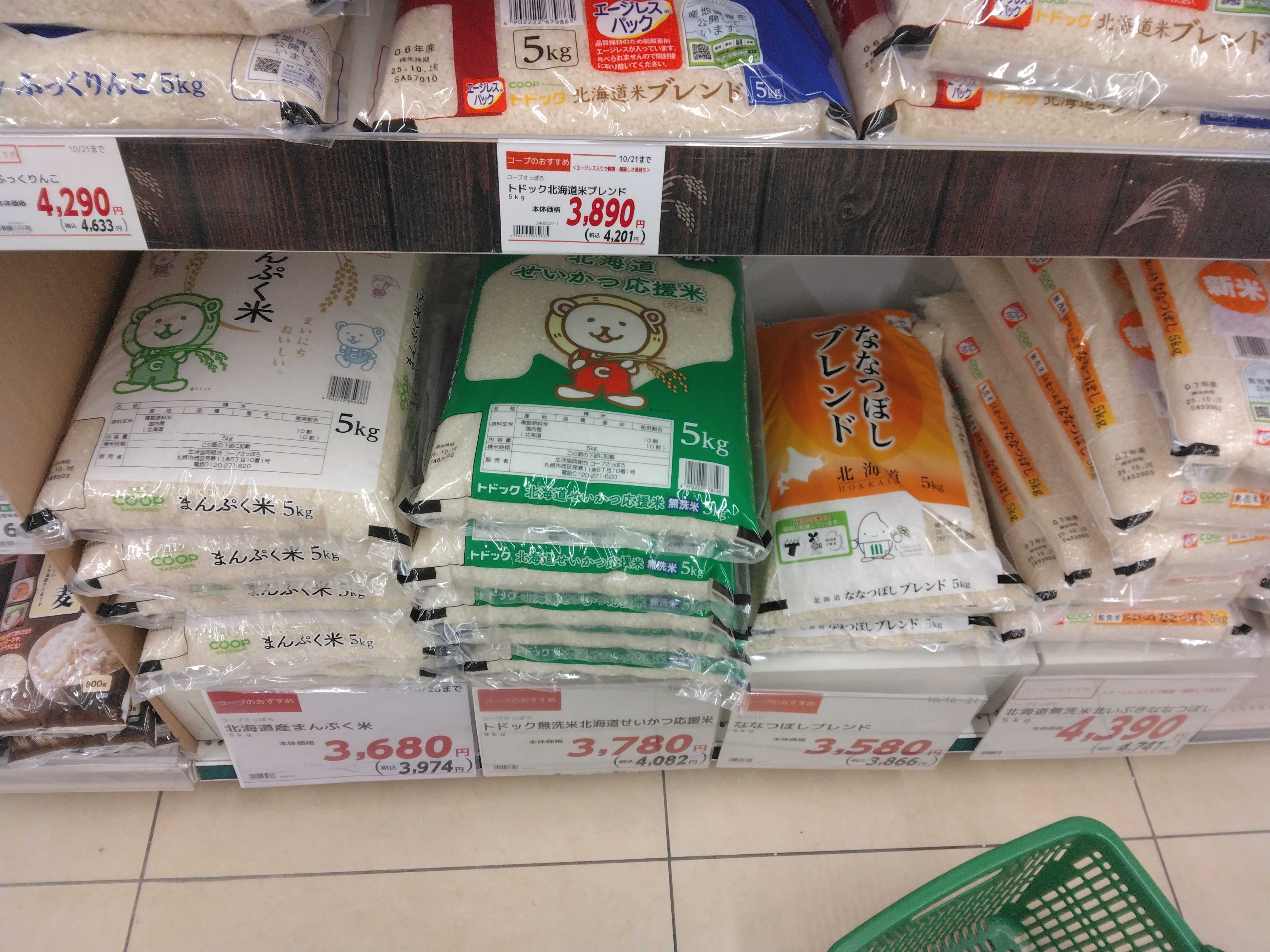 毎週のルーティンの西岡生協。お米は…いつも買っている3,600円台のブレンド米と、あとは銘柄米は税抜きで4千円超え。お米の安売りの店内アナウンスがあったので行ってみると、指定農場のゆめぴりかが5キロで4,400円…そりゃね、ゆめぴりかで5キロで4,400円は安いよ。だけどお米となるとねぇ。豊作なのに値上がりとは、どうなるんだろう。