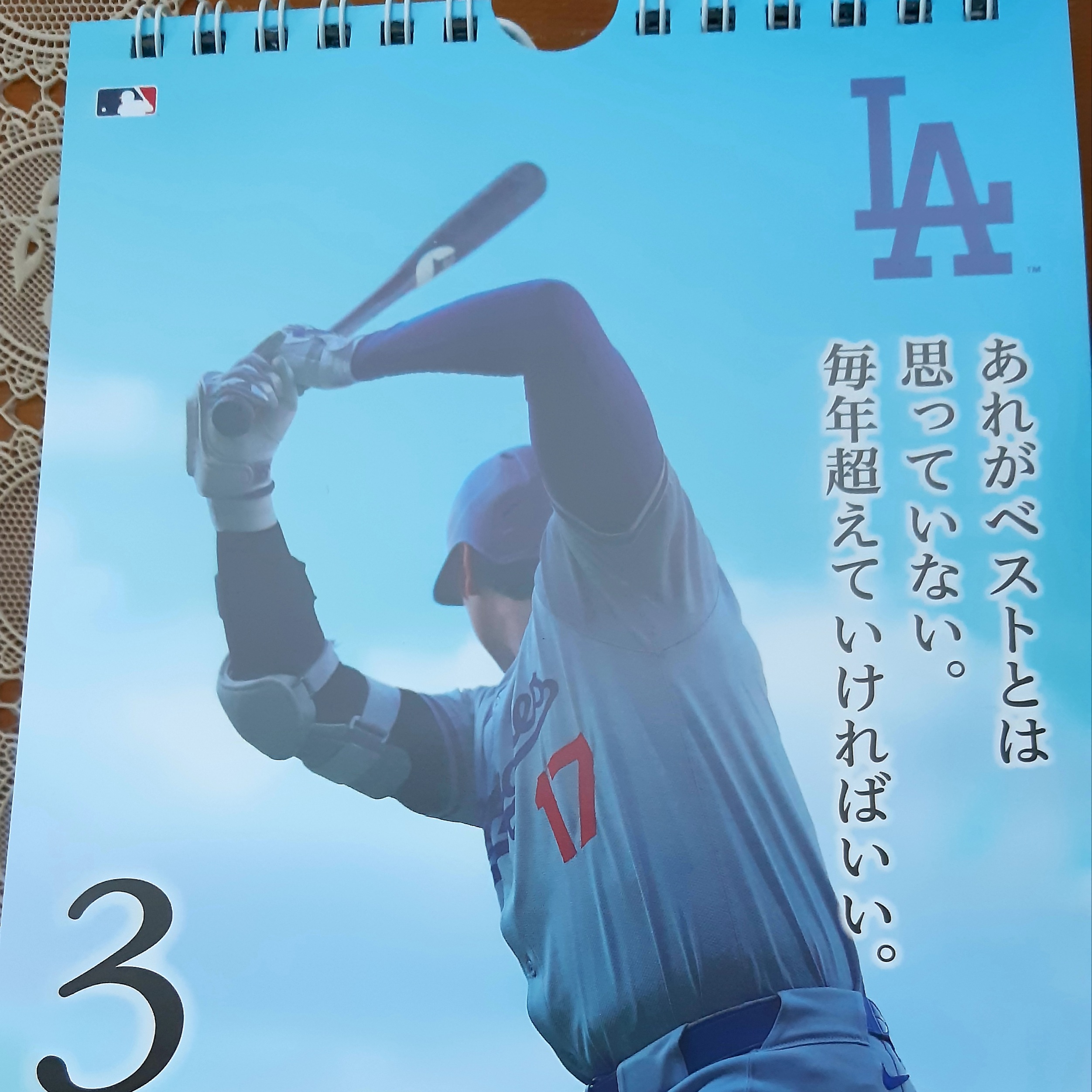 MLB開幕戦2025「カブス×ドジャース」大谷選手や山本投手、佐々木投手の活躍で、ドジャースは開幕2連勝!の嬉しい公式戦スタートを切りました!今朝の新聞スポーツ欄の大きな文字!!大谷コールに一発回答さすが大谷選手~~~♡プレッシャーを撥ね退け、ファン待望(大谷選手自身も待望)の今季1号ソロホームランを放ちました!(ビデオ判定がありドキドキひやひやでしたが…)日本開催のメジャー公式戦での日本選手の本塁打は、2004年ヤンキースの松井秀喜さん以来2人目との事で素晴らしい快挙です。やっぱり大谷選手はスーパースターです!娘から誕生日プレゼントのカレンダー♡笑日本人メジャーリーガーの選手が5人出場と言うのは史上初。日本勢の開幕投手として先発での投げ合いも史上初。そしてドジャースの佐々木朗希投手は夢の舞台に立ちました!手に汗握るワクワク、ハラハラ、ドキドキする事ばかりでした。5人の日本人メジャーリーガー出場のMLB開幕戦!ドジャース 大谷翔平選手(30)山本由伸投手(26)佐々木朗希投手(23)カブス 今永昇太投手(31)鈴木誠也選手(30)今回活躍した選手も、残念ながら普段の力を思うように発揮できなかった選手も、ほろ苦いデビューをした選手も、それぞれがそれぞれのその存在だけで、日本中を沸かせ活気づかせてくれた偉大な選手たちばかりでした。母国の熱狂的なファンの前での試合は、どれほどの計り知れないプレッシャーがあったことでしょう…想像しただけで胸が痛くなる思いです…本当に本当にお疲れ様でした!素晴らしい試合を、感動をありがとう!決戦の舞台東京ドームからは、遥か遠く離れた田舎の地でのテレビ観戦でしたが、お陰様でテレビにかじりついて夢のような幸せな2日間を過ごす事が出来ました!心から感謝です!大谷選手がSNSに「素晴らしい思い出をありがとう」とあげて下さってたようですが、「こちらこそ~~~!」と声を大にしてお礼を言いたいです。笑またこの1年、大谷選手のいるドジャースを、そして共に闘う日本人選手の山本投手、佐々木投手を応援させてもらいながら、生きる活力をもらいたいと思います!まだまだ死ねない!笑1年間お世話になる2025年公式日程表♡