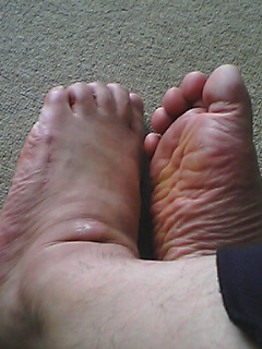 思えば、最初で最後のアルバイト。キリンビール横の運送会社(名前は忘れた)で運営されていた、キリンビール倉庫からのビア樽搬出(樽を蹴るだけ)の仕事をしたときから、飼い始めたんです。 あれは、大学に入った年の夏だから、18歳の時。とうとう、今日、逝ってしまったのを確認してしまいました。(/_;) 寂しい…ような、、、でも、 やっぱり嬉しいっっっっ!!!!!!! 今日、ほんっとに久しぶりに、JR病院に行ったんです。おっと、そこの皮膚科です。 そう、あれは、一昨年の12月。解剖実習で西オーストラリアの州都パースにある本校のマードック大学に行って、つかの間の夏を楽しんでいたとき。 まさか、水虫君まで、大喜びするとは思いませんでした。 それから、1ヶ月後、足の裏の皮が2重になったんじゃないか。というくらい酷くなって、それでやっと病院へ行ったんです。 爪の水虫だから、薬を飲まなければいけません。といわれたけれど、途中から血液検査の状態が悪く、飲めない状況だったから、半年と言われたのに、塗り薬だけの月が多くて、1年以上かかったんですね。 しかも、去年の12月には、ご存じのように(?ここでも書いたかな?)、左第5中足骨を骨折。 1ヶ月以上、薬を足に塗ることが出来なかったんですが、それでも、中断した薬を、整形外科でも出してもらいながら、足に塗っていました。 で、今日、踏ん切りをつけて、JR病院の皮膚科に行ってみたんです。 そしたら、9ヶ月以上行っていない間に、担当先生も居なくなり、新しい先生になっていました。 で、視診、綺麗だと言うことで、サンプルを取って顕微鏡検査。 振り返るなり、「居ませんよ」 え゛っ?!治ったの? それでも半信半疑で、ここはどう?と、指定しながらもう一度サンプル採取。 結構慎重に見てくれていたけれど、やっぱり無いとのこと。私「もしかして、完治。というヤツですか?」先生「はい、そのようですね。」 ヽ(^◇^*)/ ワーイヾ(*^。^*)ノ いえぇ~い 一応、喜びました。ただ、長いつきあいだったので、一抹の寂しさも感じる始末。 でも、やっと、あの、10代の頃の綺麗な足の裏を取り戻して、今、すごく幸せです。 このお腹が邪魔になりさえしなければ、思わず足の裏に頬ずりもしたいくらい。。。 感染したきっかけは、最初に書いたとおり、キリンビールの冷蔵倉庫から樽をけり出すバイトの時に借りた、作業用安全靴からでした。それ以来、綺麗な足に憧れていたから、ホント、うれしい。 さぁ今度は、嫁だ。 私は染してないよ。以前、床が汚れている所で裸足になる時期があったから、その時に感染したようです。 私の後に続いて、綺麗な足を取り戻してもらおう(^o^)/゜