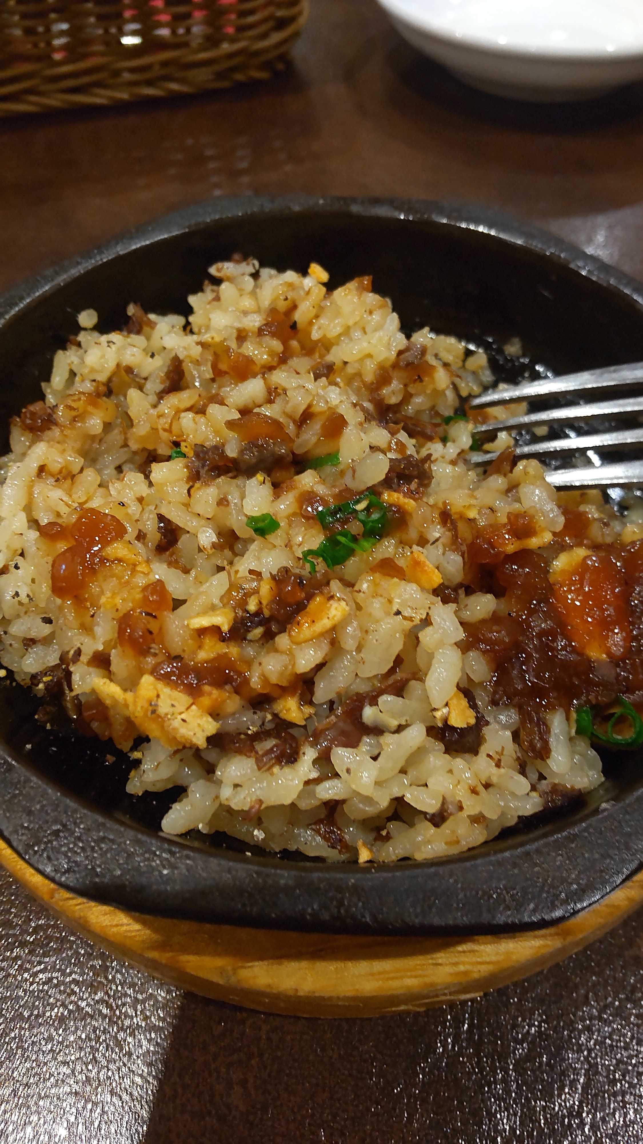 そして、つまみというか、晩御飯というか、ガーリックライスの1人サイズを頼みました。これで十分です。