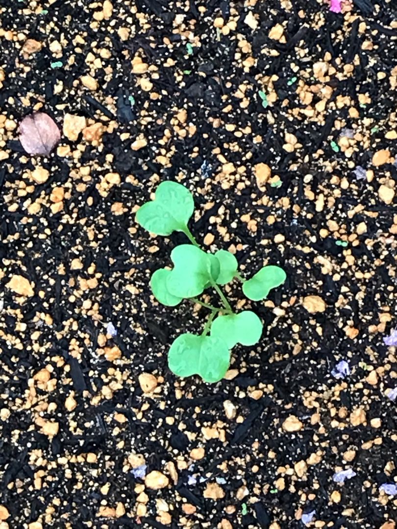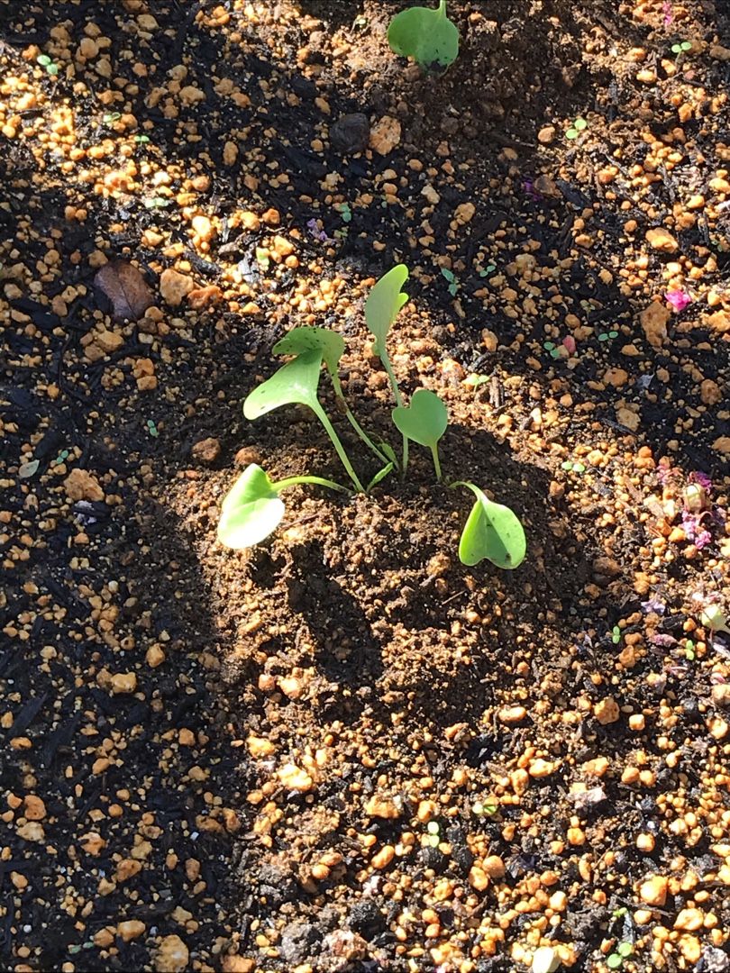 この時期、蝶々が卵を産みつけにやってきます。ムシ除けスプレーや草木灰で対処策しています。