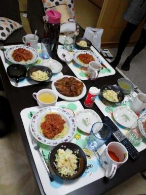 ☆★ 11/23 No.3 ★☆ただいま友達のサプライズ誕生Party、大成功でした 帰ってくるの早いでしょ~ってか。。。私以外みんな主婦なんで~旦那さんが待ってるから帰るの早いのよ(笑)んで早速、今日の料理は。。。『鶏の照り煮』と『ミートソースパスタ』と『キャベツとツナとコーンのサラダ』ですスヌーピー好きの友達の家は、食器もコップもマットもスヌーピートイレもお風呂にもスヌーピーだらけでビックリ(笑 ミートソースパスタ☆自分で言うのもなんですが。。。美味しかった 鶏の照り煮☆これも柔らかくて激ウマ大きな皿を持ってないらしくて。。。てんこ盛り(笑)では、頂きま~すみんな、満足してくれたようで良かった。。。てか、安心したぁケーキは友達の手作りです 手作りスゴ~イ♪もちろん、バースデイソングも歌いましたよ スポンジ、ふわふわ☆めっちゃ美味しかった今日は、久しぶりに会えたからガールズトークで盛り上がりましたね~また、会える機会ができたらいいな