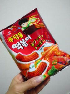 ☆★ 11/25 No.2 ★☆ダイソーのトッポギスナックにハマってます仲良くなった家族さんの旦那さんに教えられ。。。食べたら。。。激ウマ~これ、見かけより辛くないですよ~どっちかと言うと。。。甘辛い感じ色は真っ赤で~辛そうだけどねwwwwwwwマシソヨ~是非、お試しあれおっと楽天でも売ってるじゃん100円(送料別)おやつに!おつまみにぴったり!韓流百貨店の韓国食品特選♪辛ダンドントッポキ味スナック【駅伝_東京】