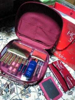 母から~毎年恒例のクリスマスプレゼント頂きましたエスティーローダーのメイクアップコレクションですこんなに入ってます☆【セット内容】デラックス アイシャドウ コンパクト 全18色(アイシャドウ チップ付)デラックス ブラッシュ コンパクト 全4色(専用ブラシ付 )ピュアカラー クリスタルシアーリップスティック 3色(#C5、#03、#29)ピュア カラー グロス 2色(#11、#30)ラッシュプライマー プラス(マスカラ下地)1本(ミニサイズ)ダブルウェア ゼロ スマッジ マスカラ 1色(ミニサイズ)ダブルウェア ステイ イン プレイス アイペンシル 2色(#01ブラック、#03ブロンズ)ダブルウェア ステイ イン プレイス リップペンシル 1色(#04 ローズ)テイク イット アウェイ クレンジングミルク 100ml(ポンプ付き)メークアップ ボックス(約H250×W300×D105 mm)コスメティックポーチ (約H110×W205 mm)ミラー(約W135×H105mm)12,600円は激安です!!写真悪いので、エスティーローダーで画像拝借リボンのポーチも可愛い♪母さま、有り難う 楽天には~これしかないね。。。17,640円(送料無料)