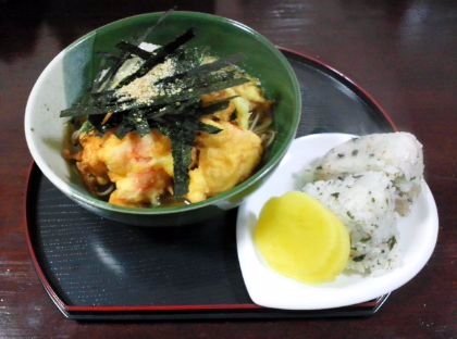 天ぷらも~ちゃんと揚げたし、オニギリにたくあんsetも付けました☆