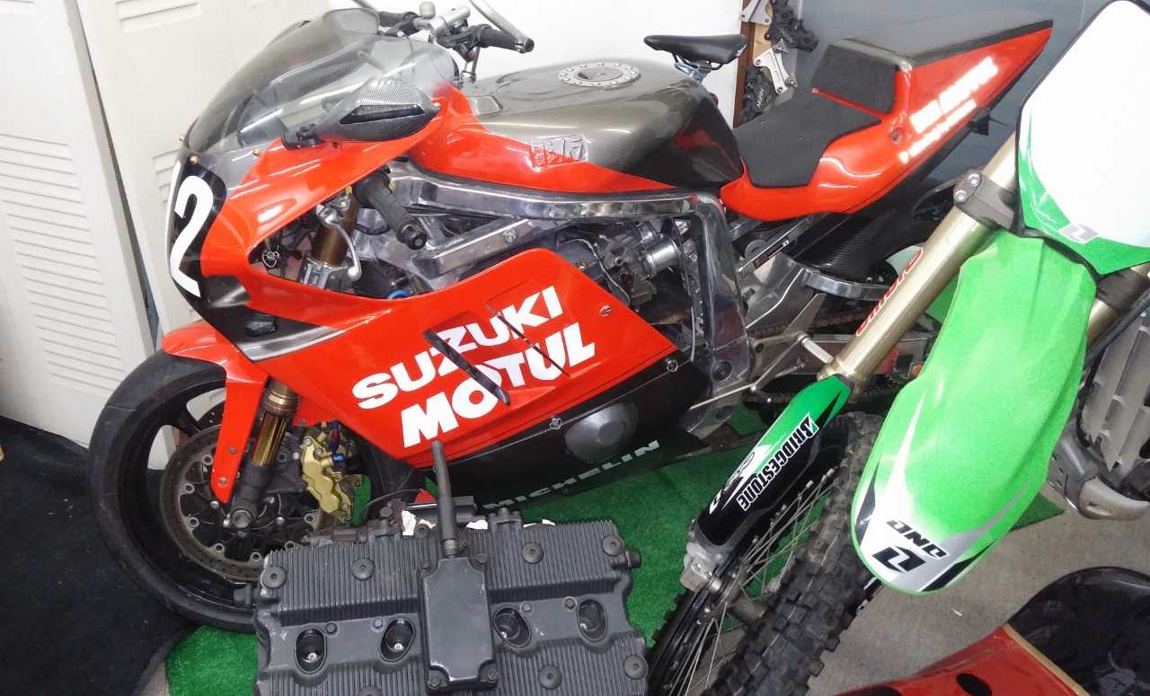 油冷750レースエンジンの話からの続きhttps://plaza.rakuten.co.jp/yoshimuragsxr/diary/202402140000/初期型油冷750のR705エンジンはサーキットからの要望で'88年からR710でショートストローク化したものの熱ダレでコーナースピードが落ちてしまうことからヨシムラは旧型のR705を再利用する苦肉の策を取ったそこでレーサーのベース車両として翌年登場したのが限定者のGSXR750RK(R715)RKはR705と同じボアストロークに戻ったことからR705の方が良いエンジンだと思う人がいるわけですしかしね…レース後半の熱ダレでコーナースピードが落ちてしまうことはレースでは致命的でしたけど一般道で頑張ってもそんな使い方にはならないのでは?国内はどのモデルも77馬力規制なので輸出仕様で比較すると初期型からのエンジンは100PSですが'88~'89のショートストロークエンジンは112PSフレームの強度も足回りも向上してるから85~87より88~89の方が比較にならない程良くなってます'90のエンジンは初期型と同じボアストロークになり最終の'91はワンバルブワンロッカーに変更されたりポートの形状も変更されていて初期型とは別物のエンジンなのです高回転型にもなっていてボアストロークだけでは語れない進化があります因みに'89RKは輸出モデルで116PS油冷最終は輸出モデルで118PS自分は油冷最終R719をベースにハイカム入れて輸出のR718仕様にしてレース用のガスケットとポート研磨にTM40サイドリンクでどこまで行けるかチャレンジ国内R719と輸出R718とでは41PSもの馬力差があるので最低でも50馬力upにはなると思うと油冷最終は初期型のR705とは比べるべきでないほどの違いがありますしかしね自分のR705は乾式クラッチクロスミッションヨシムラのスプリントエンジンなので性能云々以前に比べるべきではないプレミアムエンジンなのです今は事務室で分解してるので春には組み上げます知る人ぞ知るヘッドのマイナスビスはワークスの特徴です