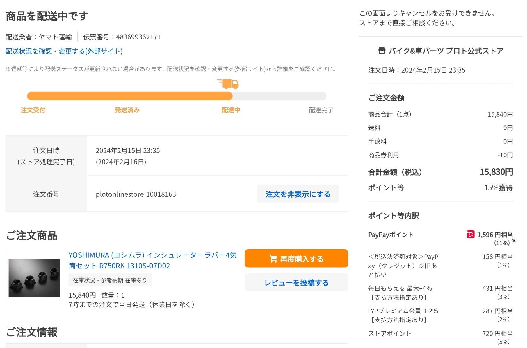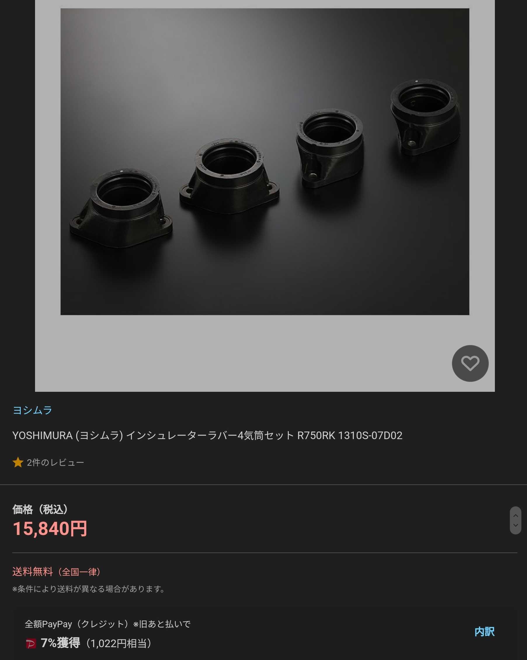 40パイキャブ用が廃盤で全滅なのでヨシムラのGSXR750RK用マニホールド購入この手のパーツはあるうちに確保しておこうしかし闇雲に買えば良いってものじゃないできるだけ得になるタイミングで買うべきです5のつく日などは楽天もヤフーショッピングもポイント上がるのでそれ迄ひと呼吸置きました同じプロトの出品商品ながらプレミアム会員なので楽天よりもヤフーショッピングの方が有利になりましたPayPayはポイントが使いやすいこともあり今回はヤフーショッピング楽天でもプレミアム会員だし楽天セールなどの時は楽天の方が得になるのでGSX1400用のヨシムラハイカムは楽天で買ってます状況に応じて最善を選択しています