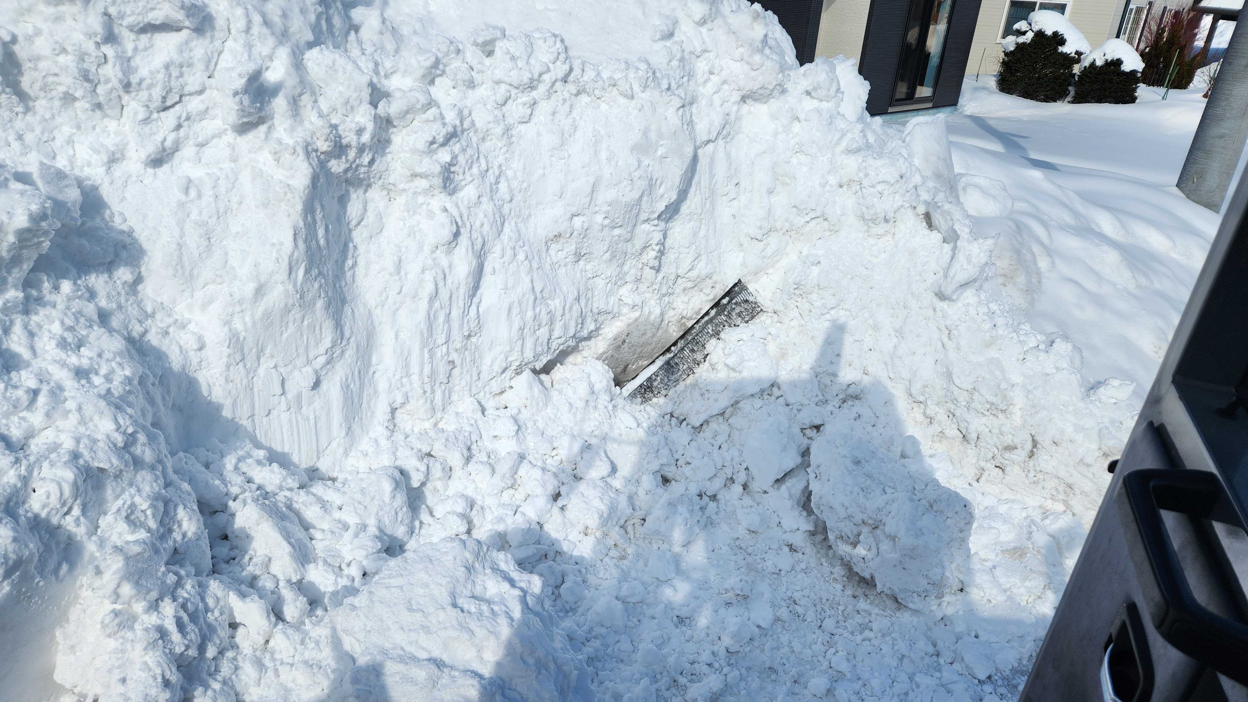 前日12時間除雪し続けてたので除雪後半降った分だけの除雪で済み午前3時半からの5時間半で終了金になる除雪ばかりしていてガレージは雪がてんこ盛り天気も良いし自分の除雪に取り掛かるZZR1100など入ってる車庫は一度雪下ろししたものの60cmの積雪ありシャッターも開きが悪くなってたのでこのまま放置したら潰れるかもしれないバンディット250とDUOzxの入ってる小さなイナバ物置は1m位積もってるスコップですべての雪を落とすのもトレーニングと思えばまた逞しくなる自分に会えるのが楽しみでもある自分の排雪2台終えてから町内会館の排雪雪山の中からなんか出てきた排水溝のグレーチングじゃんこういうの引っ掛けたら分かるはずだし自分には覚えがない排雪進めると更に2枚出てきた位置的にも市の除雪が道路の雪ごと敷地に積んだ雪山だし自分のせいにされたらやってられんな放置もできず排水溝掘り出してたら町内会長が来て手間かけてすみません!市の除雪だと理解してますとのこと余計な手間になったけどこれも筋トレの一環だと思えば問題なしファームダンプに11tダンプ以上の雪積んでせっせと排雪後輪2軸8輪の大型ダンプと違ってファームダンプは積載多いのに1軸4輪で堆積場の通路荒らすこともあり毎年早い段階で「出入り禁止」になるのだけれど今年はどこからも出禁の締め出しがないのがありがたい 明日から2日間気温10度の予報なのでそろそろ近い堆積場はファームダンプ禁止になるかも