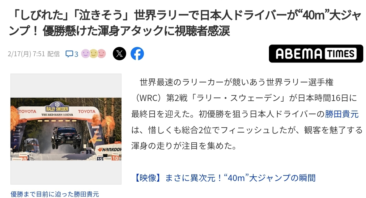 WRCで勝田が大活躍最終ステージまでもつれたレースは見ごたえありました300km以上走って3.8秒差の2位ってのが凄いねトヨタはハンコックタイヤに苦しんだと言いつつ実は相性いいんじゃないかな?気分良くヤフオク覗いて革パンツ衝動買いハーレー乗るとき履こうと思うけどそんな長い距離乗らないんだけどなwまた無駄なものが増えていく…