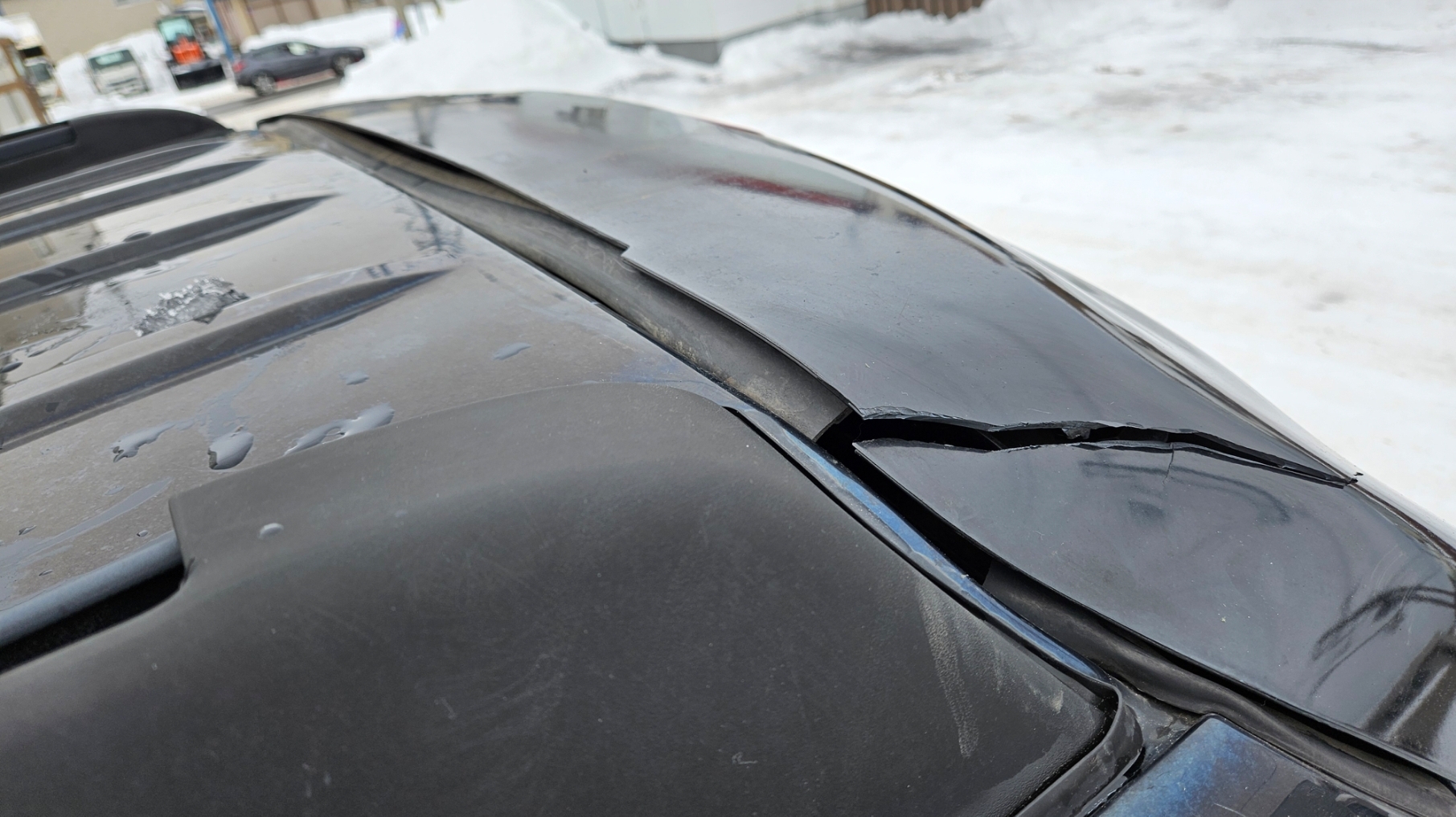 トレイルブレイザーのリヤゲートのルーフ部にハイマウントストップランプ内臓のカバーが付いているのだけれどルーフの雪を下ろさないまま無理に開けたところバキバキバキと音が鳴って半分しか開かなかった(;゚д゚)ェ…雪で忙しかったんで放置してたんだけどゲート開けられないのは不便なので昨日確認してみたなかなか酷い引っかかって開かないし…とりあえず外して割れたところや破損した取付部をハンダゴテで軽く溶着してから瞬間接着剤を流し込み重曹をふりかけてからまた瞬間接着剤を染み込ませるそうするとかなり頑丈に固定できますそしてリヤゲート側の取り付けステーを修正して装着!無事修理完了普通の雪ならそのままゲート開けても問題ないけど湿った雪が凍って固まってたのでこんなトラプルになりましたちゃんと雪は下ろさなきゃと今更思います