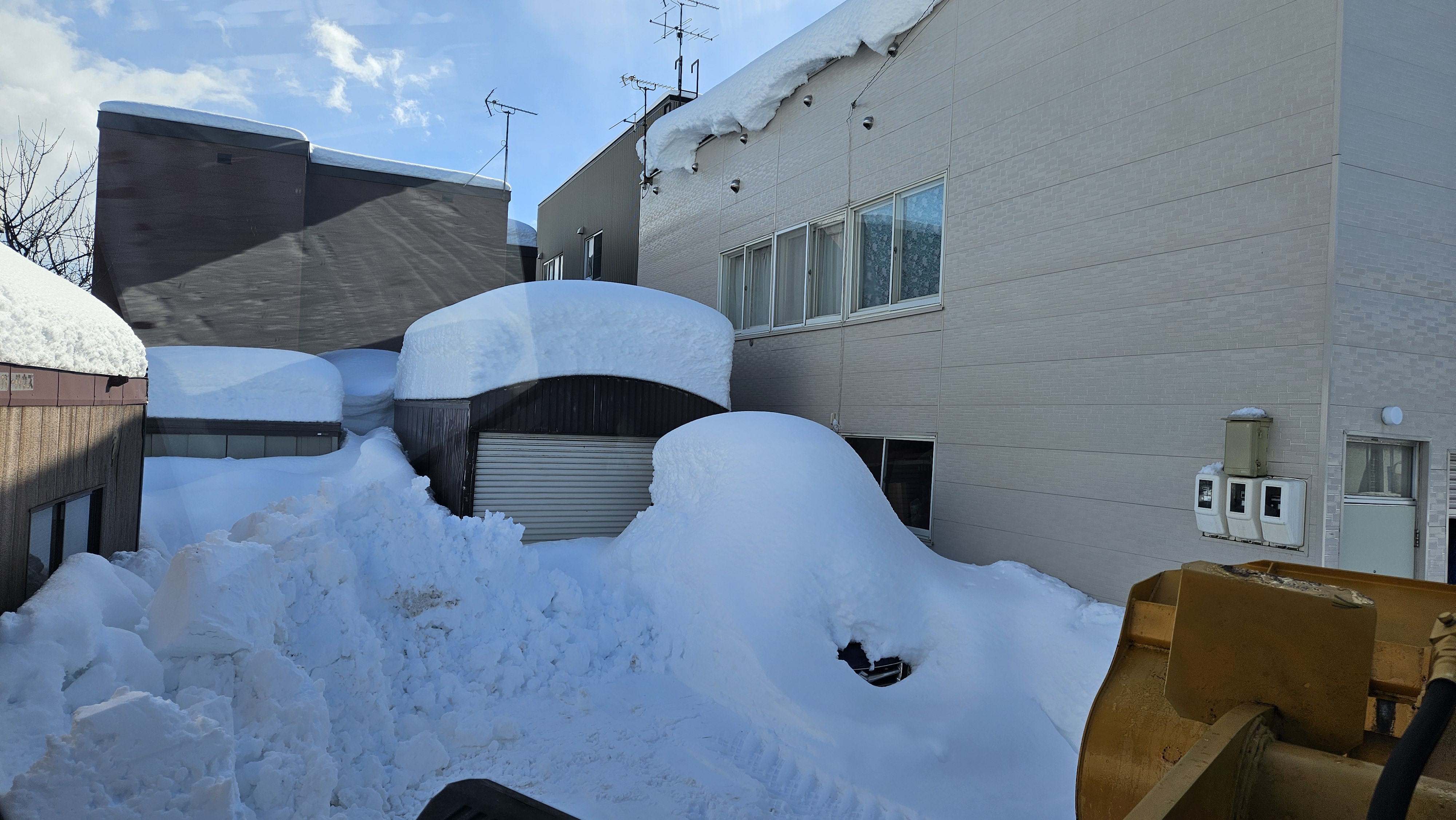 毎日の雪でスーパーハウス横のスペースに雪積み上げてこれ以上積めない…排雪してスペース空けたけど雪の塊が転げ落ちてスーパーハウスのガラス割れたまぁ仕方ないなと焦ることもなかったのだけどスーパーハウスの中の窓の横にGSXR入れてたの思い出して焦った!傷ついてるだろなとスーパーハウスの入口除雪して中から確認!ブラインドが割れたガラス食い止めてくれて助かった割れた窓はシルバーのアクリル板あったのでテープで止めて応急処置しました傷防止に古い毛布でも掛けておく必要あるな