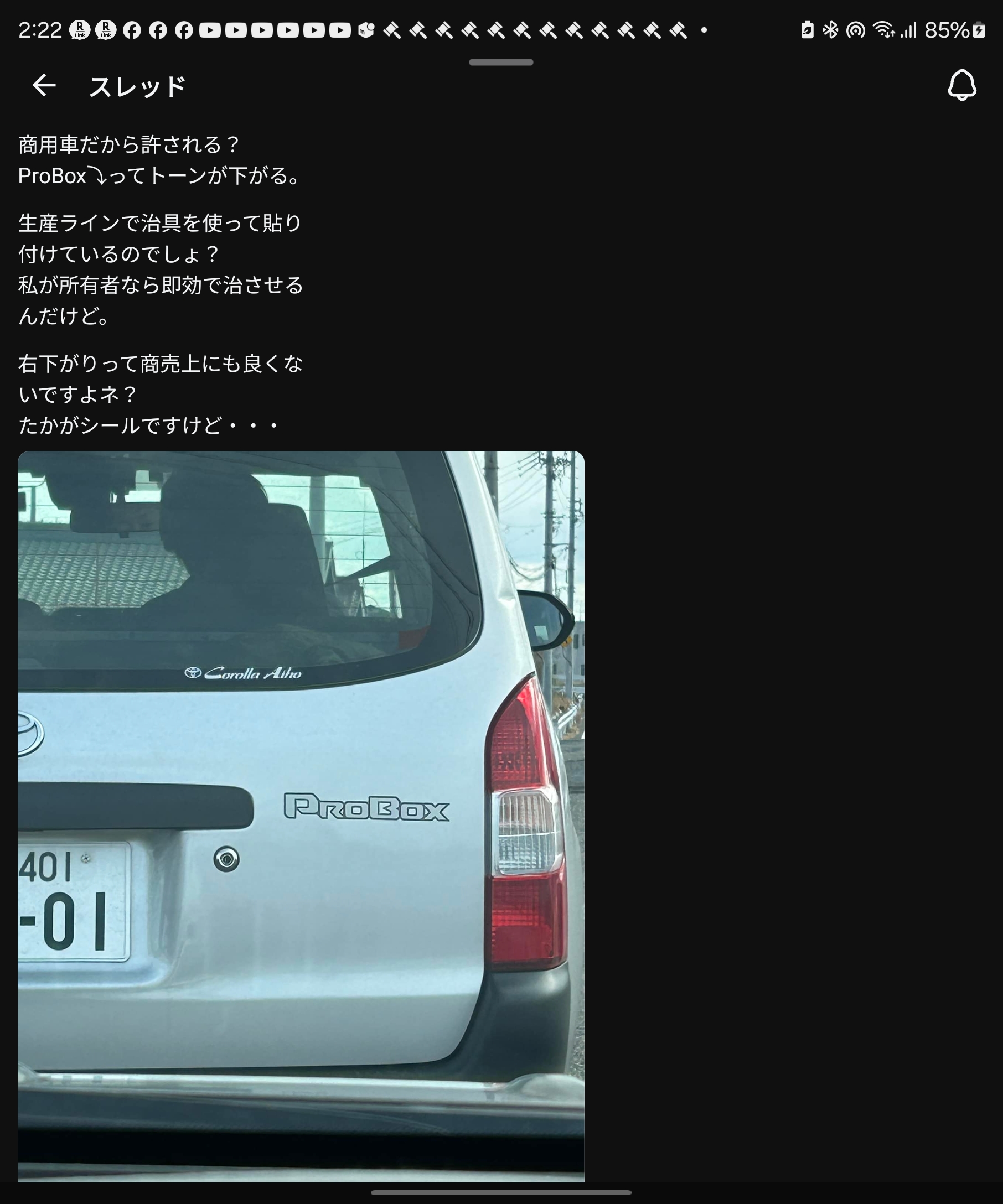 SNSで見かけたエンブレムの曲がりの投稿ステッカー貼るのに治具なんて使わないと思うけどなこれ貼り付けるの2秒も掛からないしかし一度気になりだすとずっと気になるだろうねw昔スズキの湖西工場にいたとき生産ラインでインレットパイプの取り付けやバッテリーケースの締め付けやグロメット取付した後でエンブレムや最大積載量のステッカーの取り付けもやってましたから当時はこんなの良くありましたw位置が良くても軍手の繊維が挟まったり色々あったなぁ自分で気がつく物は呼び出しの紐引っ張ってサイレン鳴らして改善してもらうんだけどそのまま流した車両で不具合として検査課で見つかると翌日朝礼で指摘されてごめんなさいm(_ _)m当時は軽といえば4ナンバーが殆どだったので「最大積載量200kg」のステッカー貼るのが多かった消費税が課税される前は自動車には高額な物品税かかってたので物品税免税となる4ナンバー貨物が安くてよく売れてましたからね5ナンバーはフロンテ(アルトと同じボディの5ナンバー)とセルボ位だったからなぁ(セルボは輸出用だけでセルボの兄弟車のマイティーボーイは時々ラインに流れてました)フロンテは先代の鈴木俊三社長が手掛けた車だったので鈴木修社長はそれを4ナンバーとしてアルトを生み出して大ヒットさせたこともありアルトには特別思い入れがあったので後にフロンテを廃止してアルトの5ナンバーとして軽自動車ナンバーワンブランドにしたのでした最大積載量200kgのステッカーは胸ポケットに入れて貼り付けてたので勤務後ポケットに入ったまま帰宅することが良くあって盗むつもりはないけど部屋に沢山たまり手紙出すときに封筒に糊付けせず最大積載量ステッカー貼って郵便出してた思い出w