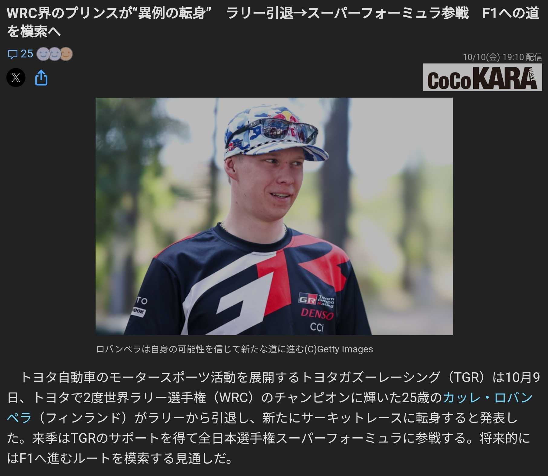 ロバンペラがWRC引退!というニュースに驚いたけどF1目指すとか想像を超えるニュースでしたスーパーフォーミュラではロバンペラがシードを得る分誰かがシートを失うことになるので最年長の小林可夢偉がビビってるような話もありましたwロバンペラといえばフォーミュラドリフトで優勝したことも思い出されます決勝で惜しくも破れた小橋正典選手は自分と親しい元モトクロススズキワークスライダーの小橋勝利さんの息子昨年小橋さんのサーキット(モーターランドSP)に遊びに行った時にマシンを見せてもらって色々説明聞いたけど外注すると恐ろしい金額になるのでエンジンもミッションも自分で組んで作ってるとのことでした火がついても見えないレース専用の高価な燃料バカ食いらしいです息子も紹介されたけど自分から見ればいつもネットで見てるから随分前から知り合いみたいな感覚なんだけど息子は俺のこと知らないんだけどねwwwWRCファンというだけでなく親しい小橋さんの息子の戦友として今後の活躍を応援したいです