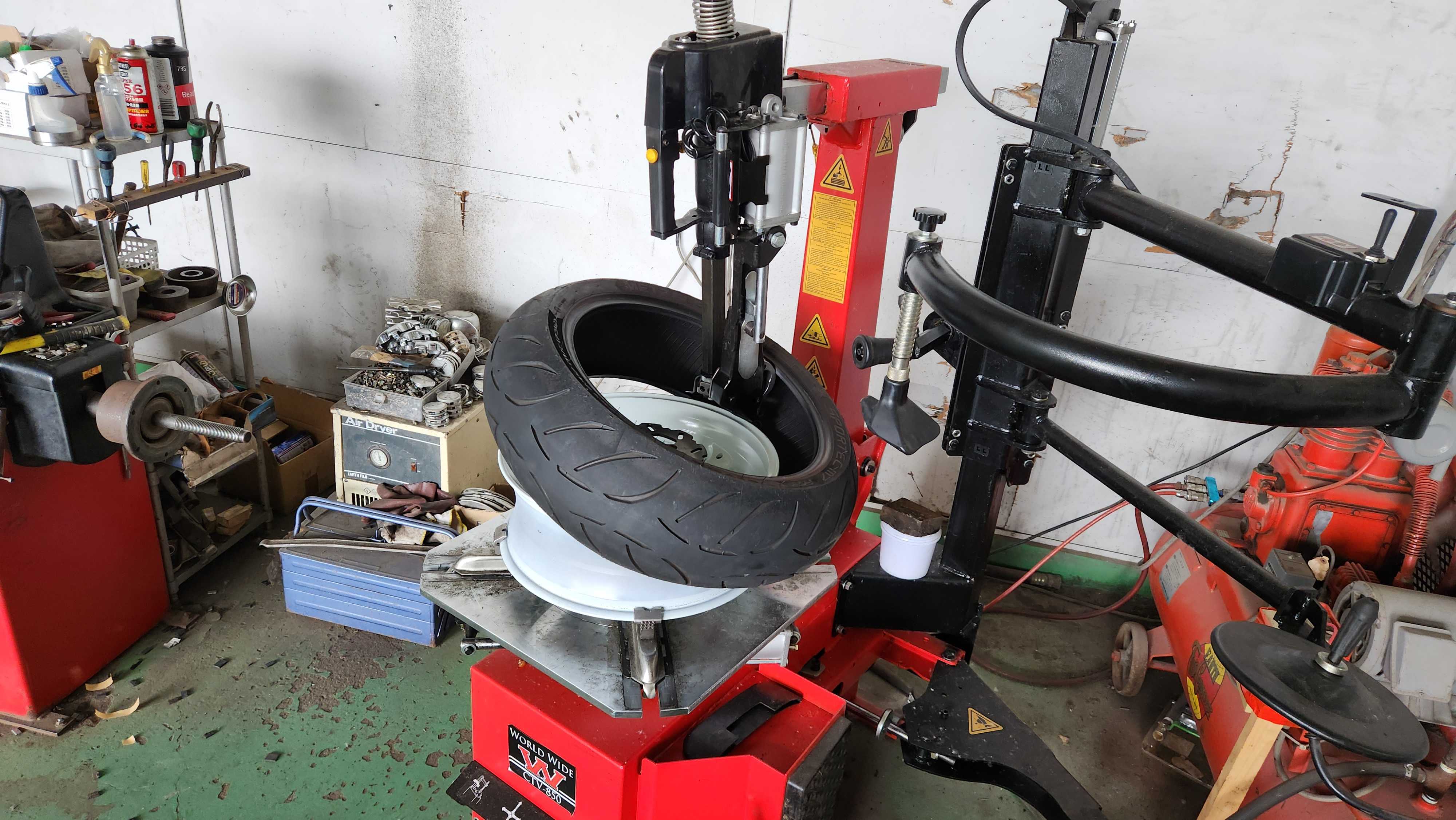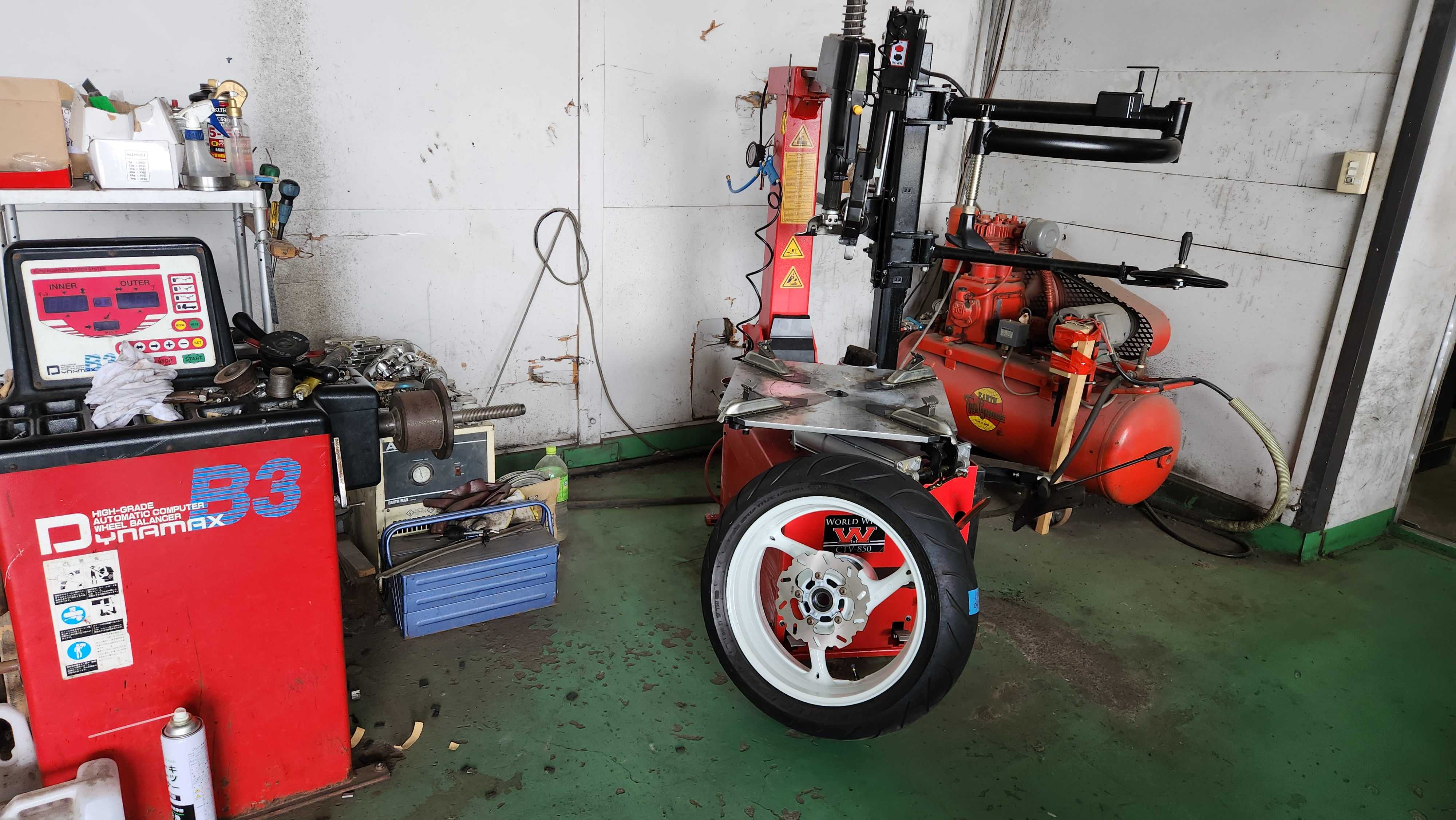 タイヤ屋の社長居なかったので勝手にブレーカー入れてコンプレッサー回して作業