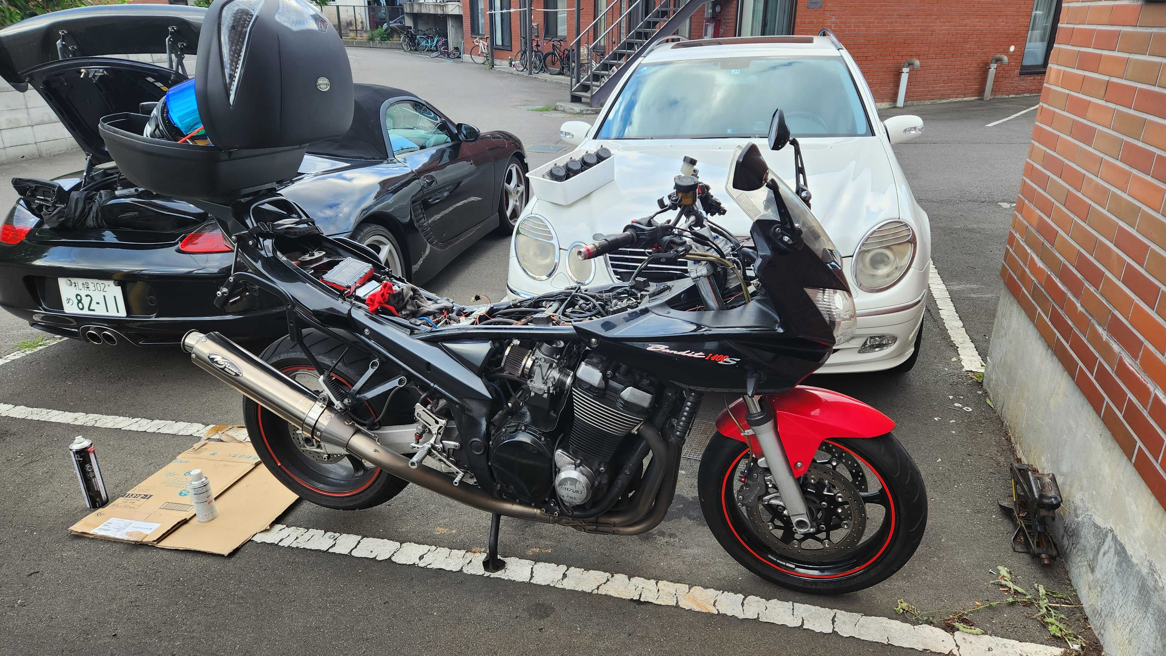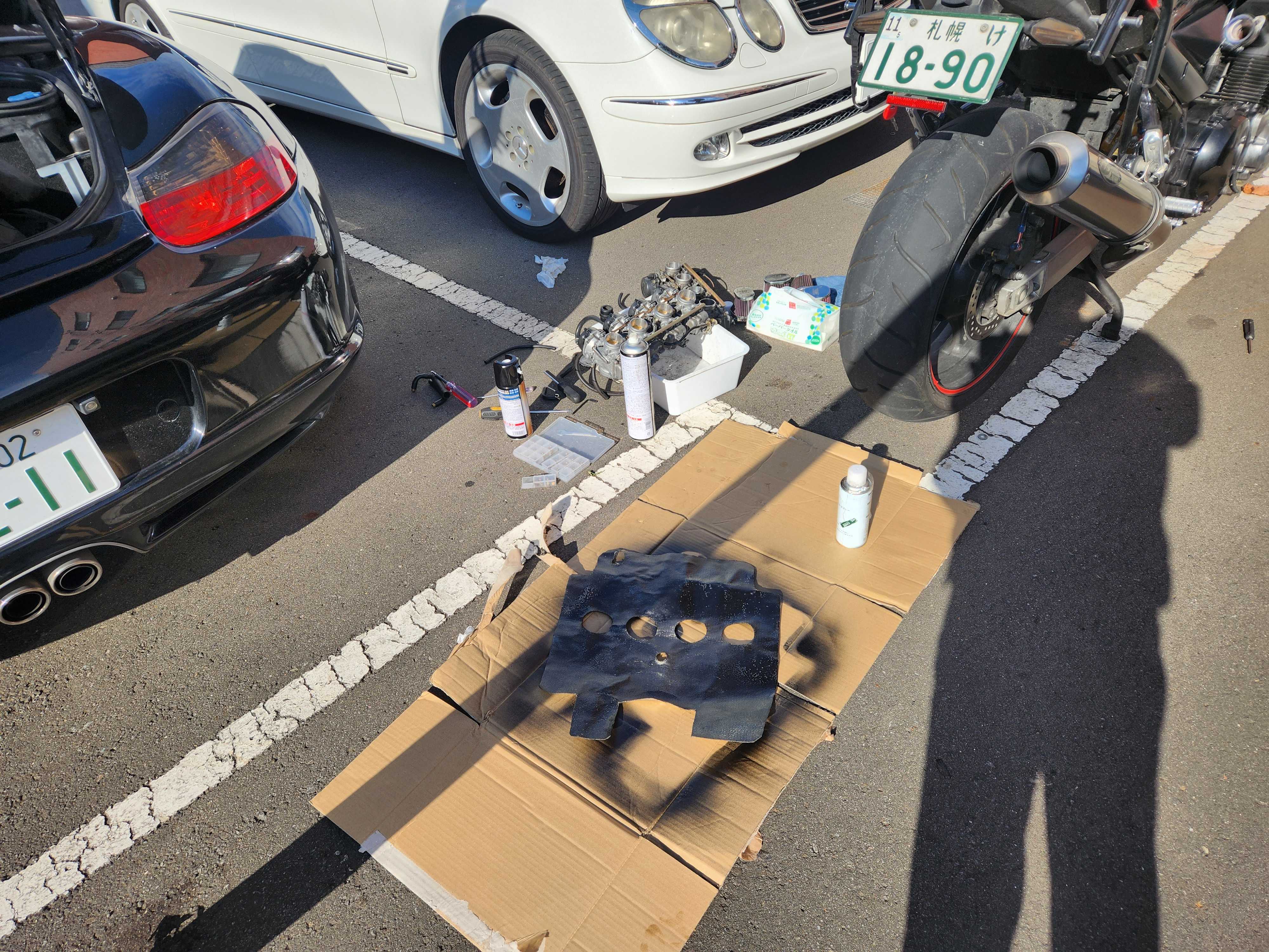 マンションの駐車場で青空整備してたのでキャブの同調は後日改めてガレージで行います