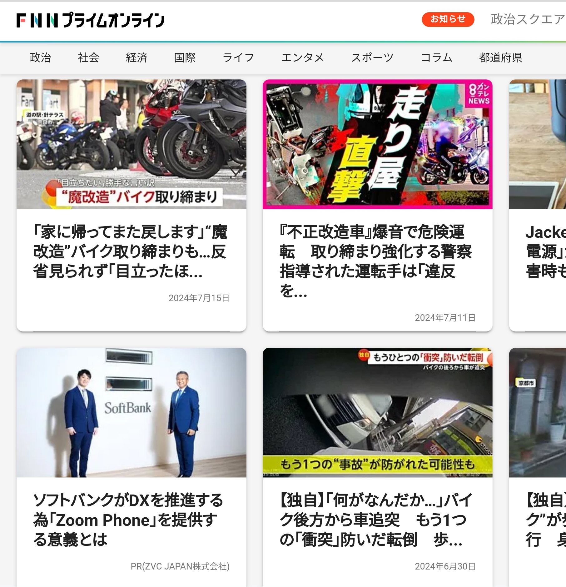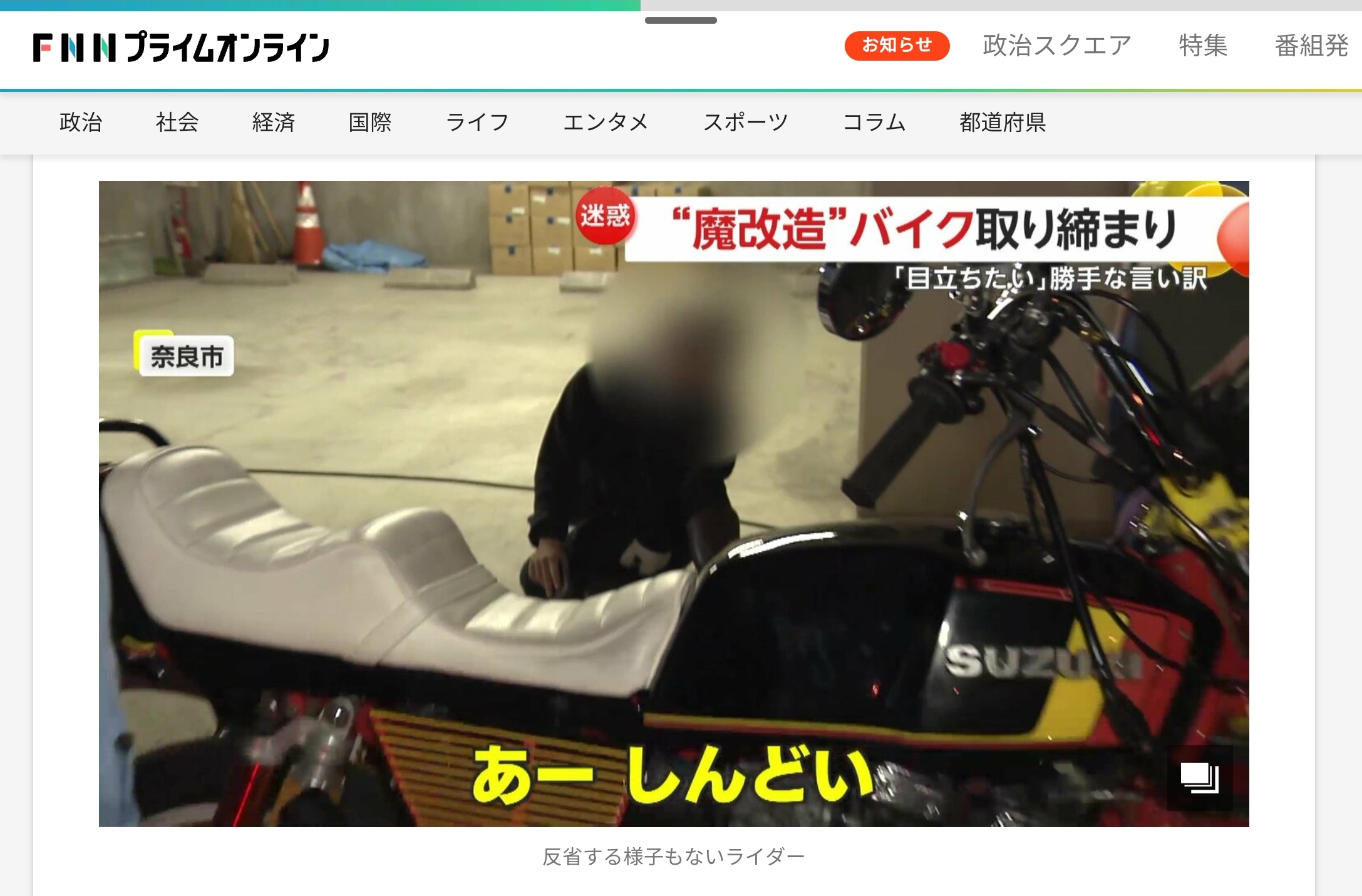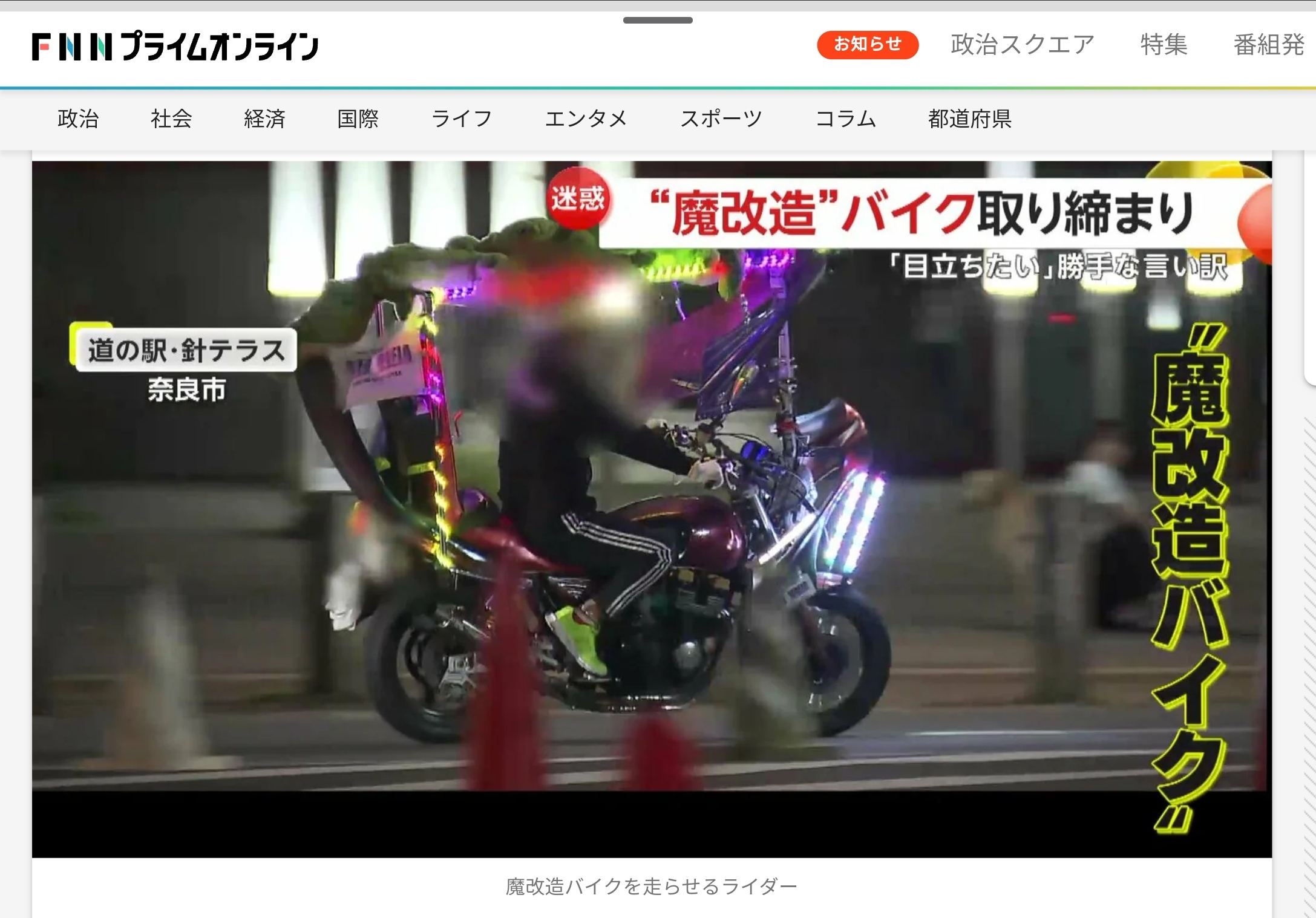 そしてニュースサイトで魔改造バイク取り締まりという文字を見つけてニュースチェック
