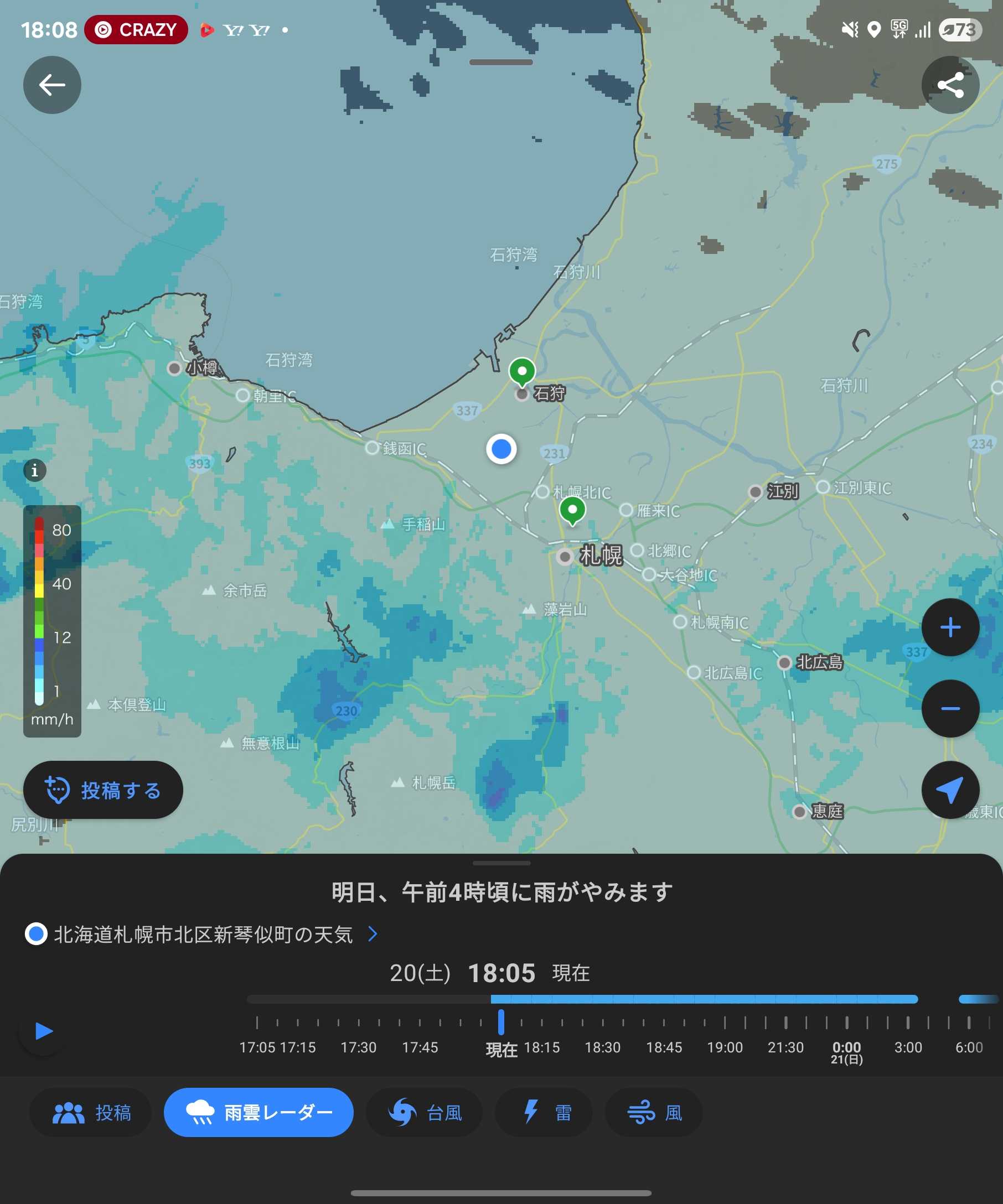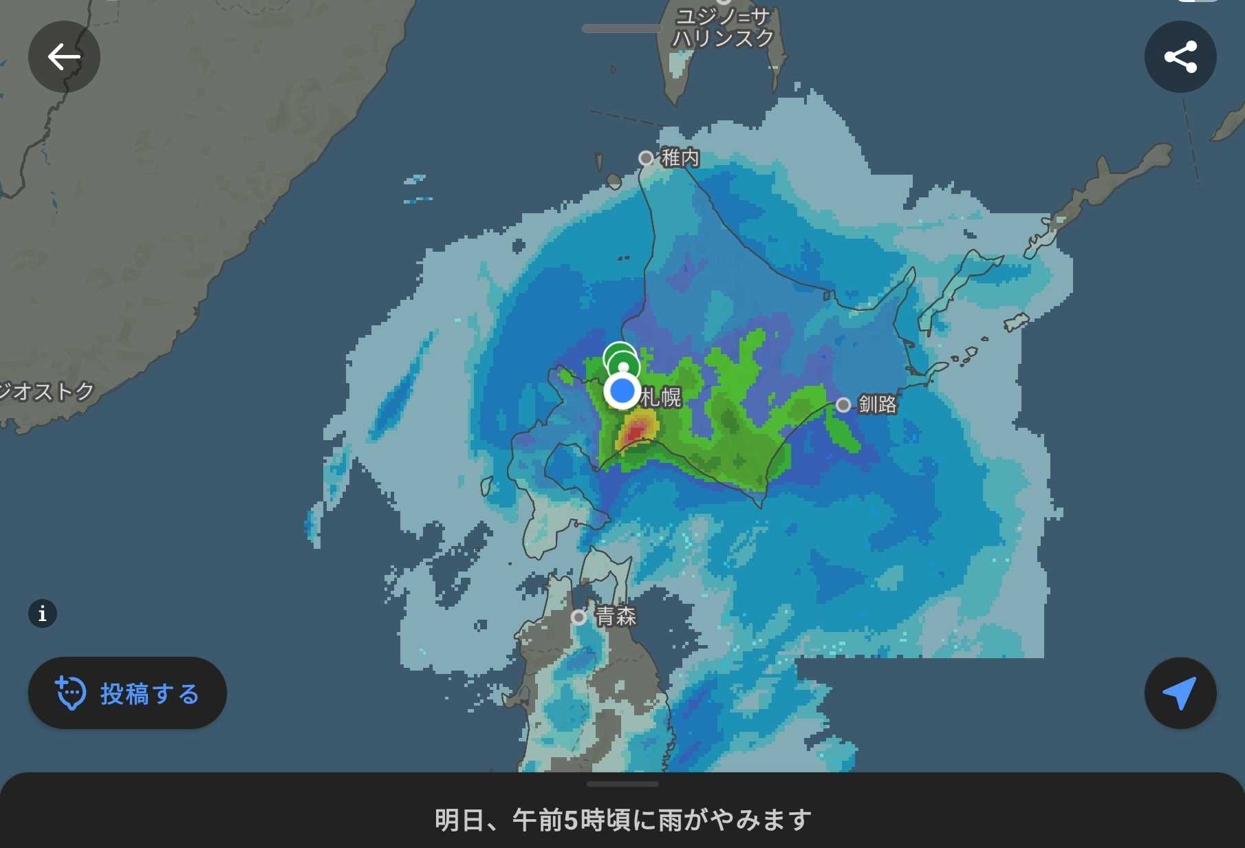 深夜は強雨の模様