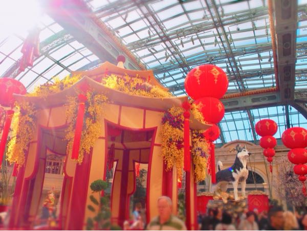 こんにちは。 吉村シスターです。 私がラスベガスを旅行した2月は ちょうど旧正月の時期でした。 街中、赤提灯や中国のお祝いの装飾だらけだったのですが、 9年前にラスベガスを訪ねた時はここまで中国な雰囲気ではなかったです。 ここ最近中国が発展し旅行客が増えた影響なのかなと思いました。 ベラージオのロビーを抜けた庭みたいなところに、 旧正月天国がありました。 今年が戌年なのは、同じなんですね。 これは和風オブジェ。 もろ日本ですが、旧正月に乗っかかったという感じで、 外国人の方々にも受けそうな見た目です。 ベラージオのカジノでいきなり現れた 旧正月パレード。何気に本格的。 みんな何だなんだという感じで、 カメラを持って集まってきます。 他にも、お土産屋さんで旧正月割引きがあったりして、 ラッキーでした。 こんなに旧正月の雰囲気を味わえたのは初めてです。