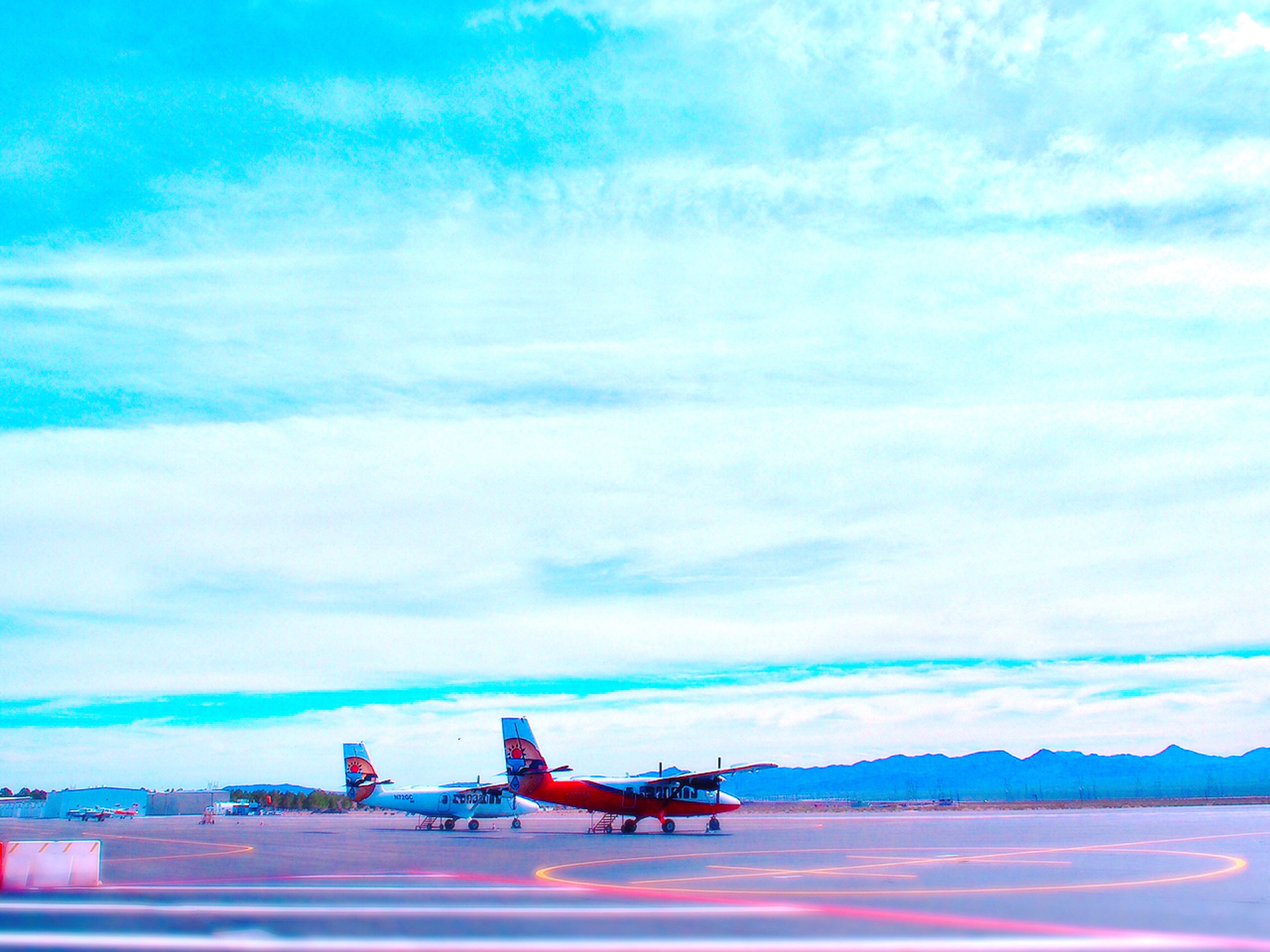 こんにちは。吉村シスターです。今年の2月にラスベガスに行った際に、グランドキャニオン日帰りツアーに参加しました!陸路だと早朝から晩まで何時間も車に乗らないといけないみたいなので、それはツライと思い、空路で行くことにしました。HISが仲介してくれた現地のツアーのため、日本人は私たちのみ。最初の集合場所はベラージオの地下1階にあるところで、少々わかりにくいので、下調べは入念に!バンみたいな大きめの車に乗り込み、ラスベガス中心から1時間ほど車を走らせ郊外の小さな空港に到着しました。▲空港に到着。小さめの空港のため、セスナ機やヘリコプターしかありません。搭乗前に乗客ひとりひとり、受付で体重をはかります。機体のバランスがあるみたいです。▲私たちが乗るセスナ機です。いかにもな小型機だ。。。!どきどき。。10人乗りくらいだったと思います。ここまで来たら、もう乗るしかないです。▲私たちは、パイロットのお兄さんの後ろの席でした!日本語の音声ガイドのヘッドホンがついてる席がこの2席のみだったからかもしれません。操縦席が丸見えだったので、めちゃ興奮しました。機長さんはしっかりと搭乗前のチェックを行っています。いよいよテイクオフ!▲離陸して数十分でこのような絶景が広がっています。見たことない景色。。この時点でグランドキャニオン感が出てます。セスナ機はやっぱりふわふわしてこわいので、到着するまで落ち着きませんでした。機長さんがその都度大丈夫だよと安心させてくれようとしてくれましたが。▲こんな景色はなかなか見れないです。セスナ機で1時間ほど飛行したら、グランドキャニオンのある空港に到着しました。▲グランドキャニオン国立公園です。グランドキャニオンはアリゾナ州のため、ラスベガスのあるネバダ州とは時差が1時間あります。さすがアメリカ。。広すぎです。グランドキャニオンの空港に着くと、まさかの日本人ガイドのおじさまがスタンバイしてくれてました。わたしたちのためだけに。いない場合もあるらしいのですが、運良くガイドの方がいてくれました。▲ツアーについてるお昼ご飯代わりの軽食です。グランドキャニオンの絶景を見ながら食べます。ちゃんとゴミ箱もあるので、安心です。いよいよグランドキャニオンの絶景は次回の記事で。。