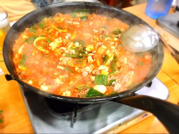 初日の夜に、プサンの繁華街ソミョンに繰り出し、 流行りのタコ鍋屋さんへ。 こんな感じの鍋なのですが、 辛すぎず、食べやすい。 お店のおばちゃんが目の前で作ってくれます。 大きいお茶碗に入ったライスが付いていて、 そこにこれをかけて食べると美味しい。 キムチ鍋ごはんみたいな。 こういう小皿メニューがあるのが韓国らしいです。 手前の韓国のりを先程のごはんにかけると、 めちゃめちゃ美味しいです。 韓国の定番ビールはこちら。 "カスビール" 軽くて飲みやすい!私は好きな味です。 女性向きかな。男性は物足りないかも。。 ちょっと良いお店では、 アサヒとかキリン製ビールが置いてあるようです。 韓国ごはん、けっこういけるかも!^^ ケミチブ 西面店 https://www.pusannavi.com/food/3659/
