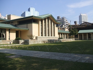 研修で、池袋の自由学園-明日館へフランクロイドライトと遠藤新の設計で質素に立てられた優れた学校建築のようでした。実際に使っていた時は、1927年の竣工時より建物がひしゃげたりして雨漏り等で非常に使い勝手の悪い物だったそうですが今はそれらを上手に直し、感じの良いものに改修されていましたこれらを解体せずに文化財として再生したその業績は大したものです自由学園-明日館