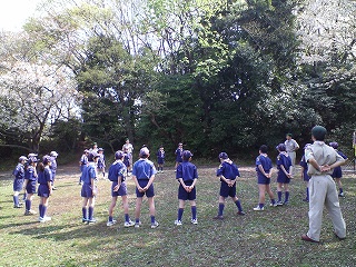 デンリーダーとして初カブ組・隊集今年度は組を意識した活動で進める趣です初回は公園内自分達の住処デン探し。公園を見晴らす小山に下草を刈った巧い一角を見つけ出しスカウト達と下草や笹を切り取り自分達の住処を構えます自分自身で手鋸を引き、ナイフを使い、看板をつけてそして旗上げコーナーを造りました其々に寝床を整頓する者、入り口を作り変える者、組の旗など思い思いの楽しみを見つけ出したと感じます↑デンと旗(ウルフジュニア)何故かデンリーダーの自分が一番楽しんでいたように感じますが久々に基地創りをしたようで楽しかった一日でした