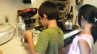 8月に入ると、、、学校のプールや勉強会もなくなり ・・・保育園の三男以外はみんな家にいる。。。ブログを書く時間がなくなりました。。。8月8日(月)先日、姉から「夏休みの宿題に石鹸はどう?」とお誘いが ・・・ え! いいの !!!遠慮なく、、、姉の石鹸作りの手伝いを宿題にしてしまう事に決定! やったー。。。姉は自宅で石鹸を作って販売してます! 駄菓子屋と兼業です! がんばるなー。。。長男は理科が大好き! 石鹸がどうやってできるのか?にも興味津津 !!!「どんなんやろー ・・・ 薬品使うんやろ? ・・・ むずかしい?」興奮していーっぱい聞いてきます、、、まあ、、、いいんんだけど、、、ちょっと うるさい ・・・ ママに言われても、わかんないでしょ!長女はお料理感覚 ・・・ 「わたし かわいいの作りたい!」えーっと、、、それもママにいわれても。。。 がんばって作ってください。兄弟5人全員で姉の家へ ・・・ 二男&三男は従兄弟とゲームをして待ってます。四男は私と姉の家でゴロゴロ、、、今日は楽できるわ。。。長男&長女は指示にしたがって動いてます! そろそろ始まったかな?材料の分量を量っているようです!「あ!多い、、、こっち減らそう、、、ん!減らしすぎ、、、じゃあこれで調整、、、」「これが最後のやし! 絶対に分量どうりに、、、あ!多い、、、ちょっとまって~」なんか、あやしい言葉がいっぱい聞こえるなぁ ・・・ お姉さん、がんばれー。。。その後もたびたび姉の叫び声がしてたけど、なんとか石鹸の原液は作れたようすです!子供達がキッチンからこちらへ戻ってきました。。。 次はなにをするのかな?好きな形の型を選んで油を塗ぬっているようです!「これ楽~ 良い休憩になるわー、、、」と、長男 ・・・ 疲れるの早いよ!「楽しい~ でも、なんで私のぬりにくいの!」と長女 ・・・ 文句多いな、、、あなたがそれを選らんだしでしょ! ・・・ 他のにしたらいいやん!「これがいいの !!! 」・・・ もう! 女の子は難しいわ。。。「え~、、、これネエネの仕事のやん! これも僕がぬるん?」と長男!あっちも文句いってる !!! ・・・ あなたたちの石鹸作りはあくまで手伝い!ネエネの石鹸作りのお手伝いのお礼に出来上がった石鹸をわけてもらえるの!わかったかしら !!! ・・・ 「はーい 怒らんでも、おもしろいしやるやん!」なら文句いわんとしなさい! ・・・ ほんま、、、ひとこと多いんですけど! そのころの四男、、、姉が即席で作ってくれた玩具に夢中! タオルと鈴でできてます!必死でパンチ !!! 音がなったら「うきゃ!」と声をあげてます、、、かわいい!石鹸の原液を適度な硬さになるまで混ぜ続けるのが、かなりしんどかったようす。。。「ネエネまだー、、、もういいんちゃうの、、、手がだるいー、、、」あなたたち ・・・ ほんと文句多いなー、、、帰るよ! 、、、「がんばります。。。」 はい ・・・ がんばりましょう。。。なんとか型に原液を流し込むまでいきました。。。 お疲れ~。。。今日はこれで終了。。。 続きは3日後に。。。8月11日(木)今日も5人でネエネのお家へ。。。 石鹸はできてるかな?ちゃんとできてました! 型から出すのに苦労してましたが、、、いろんな形の石鹸をそれぞれもらって、長男&長女はごきげん!あとは、家で乾燥させれば完成!長男&長女はすっかり宿題が終わった気分ですが、、、まだ、終わってないよ!作っている時の写真とだいたいの作り方、感想を画用紙に張り付けて宿題は完成です!「来週がんばります!」・・・ はい! がんばってください。。。ネエネに感謝 !!! なかなかできない体験でした。良い宿題になりそう。。。