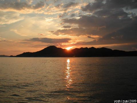 ~グルメ北木島~ そもそも、北木島に来たのは、宿泊先「グルメ北木島」をネットで見つけたのがきっかけであった。 都会育ちの自分にとっては「離島へ行きたい」という冒険心溢れた「旅欲」とも言える欲求があったのに加え、「瀬戸内の美味しい魚が食べたい」という「食欲」も溢れており、ちゃっかり両欲を満たしてくれるような場所を探していた。 笠岡諸島は旅欲を十分満たしてくれる場所だが、瀬戸内海の真ん中にあるにもかかわらず、食事を売りにした店や宿をネットで探しても、意外に少ない。「新鮮な魚で日本酒を一杯・・・」という食欲が暴走し始めた頃、食事を売りにしている宿、「グルメ北木島」を掲示板やクチコミで見つけたのであった。 豊浦港から北へ10分程度、立ち並ぶ石材作業所を横目に見ながら歩くと、白い建物のグルメ北木島が見えてくる。マスターの奥さんに迎えられ、2階の海側の和室に案内された。前方と右方の窓から穏やかな海と白石島と本土が見える。海に近いけれども穏やかなせいか、波の音はほとんど聞こえない。水がきれいなせいか、磯の香りもしない。車の往来もほとんどなく、たまに鳥の鳴き声が聴こえる程度で静かだ。 風呂は別棟にあり、島にあった石で作ったという石風呂である。風呂も大きく、石の感触が心地よく気持ちいい。 夕暮れの時間になった。宿から2,3分岸壁を歩いた。夕陽が間もなく白石島に落ちようとするところであった。 刻々と太陽が沈み、雲が動き、空の色調が変わっていく。低層の雲が燃えるようなオレンジ色に染まる一方、高層の筋雲はいまだ白く凛としている。天空は徐々に夜の蒼さが増していく。1分として同じ景色はない、素晴らしい地球の贈り物だ。 さて、宿に帰れば夕食である。クチコミでは、夕食の量が多いとあったので、風呂あがりのビールを我慢してテーブルについたのだが、大正解だった。 お刺身、焼き魚、煮魚、酢の物、陶板焼き、土瓶蒸し、唐揚げ等々・・・どれも素材が良く、調理も和食の趣向あり、フランス料理の趣向あり、マスターのこれまでの経験がにじみ出たものだと思われ、いずれもとても美味しかった。 途中でマスターがやってきて、他の同宿者と一緒にいろいろお話した。メニューの準備は2週間前から始めるのだという。天然ものにこだわっているそうで、必要な材料を確保するのが大変だそうだ。そのためにいけすも用意しているのだとか。 マスターは自然体で生活しているとおっしゃっていたが、島にたくさんの人に来てもらいたい、という強い気持ちを内に秘めているような、そんな気持ちが伝わってきた。 それに・・・宿のマスターと同宿者と一緒になっていろんな話をする、そんな雰囲気がとても温かく、楽しい時間だった。ここのところ旅の宿はビジネスホテルや旅館ばかりで、こういう楽しさを忘れかけていた そうやって喋りながらかれこれ2時間、完食しかけたところでマスターが「ご飯は食べる?」と聞いてくる。今から白いご飯は食べられないと遠慮していたところ、隣の同宿者が「昨日は○○めしでしたよ。」と伝えてくれた。「あ、それならいただきます!」「もしかして白いご飯でも出すと思ってたの? そんな芸のないことしないよ~」と気さくに言いながら、調理場へ向かっていく。マスターの心意気を見た気がした。 そして出てきた蛸めしと蟹の味噌汁、満腹でも別腹? 美味しかった! 部屋に戻ると、窓には穏やかな海と白石島にわずかに灯る夜景、空には星。部屋の電気は消したまま、暗闇に目が慣れるのを待ちながら、レミオロメンの「花火」を聞いていた。海岸をイメージしたスローテンポの曲が、このゆったりとした穏やかな景色のBGMとしてハマっていた。至福の時間だ。 朝、明るくなって目が覚め、窓の水滴を拭き取ると、大きな朝焼けが迎えてくれた。【グルメ北木島HP】http://www.kcv.ne.jp/~gurume00/【チームグルメHP】(北木島とグルメ北木島が大好きになった人たちで作るファンクラブのようなものだと思ってください)http://www1.megaegg.ne.jp/~nyanko/index.htm<つづく>