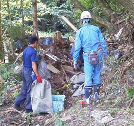 今日は3名加わって8名の活動。谷筋の林に散乱した瓦礫の撤去作業です。日陰のおかげで体力を消耗せずにすみました。途中からハチが出没、一同肝を冷やしました。幸い、刺されることもなく、午後には、重機で出来ない瓦礫処理はやはりあります。でも、もっと大事なのは、活動を通じて、被災された方々に「気持ち」を届けることなのだろう、とと思います。震災はまだまだ終わっていません。