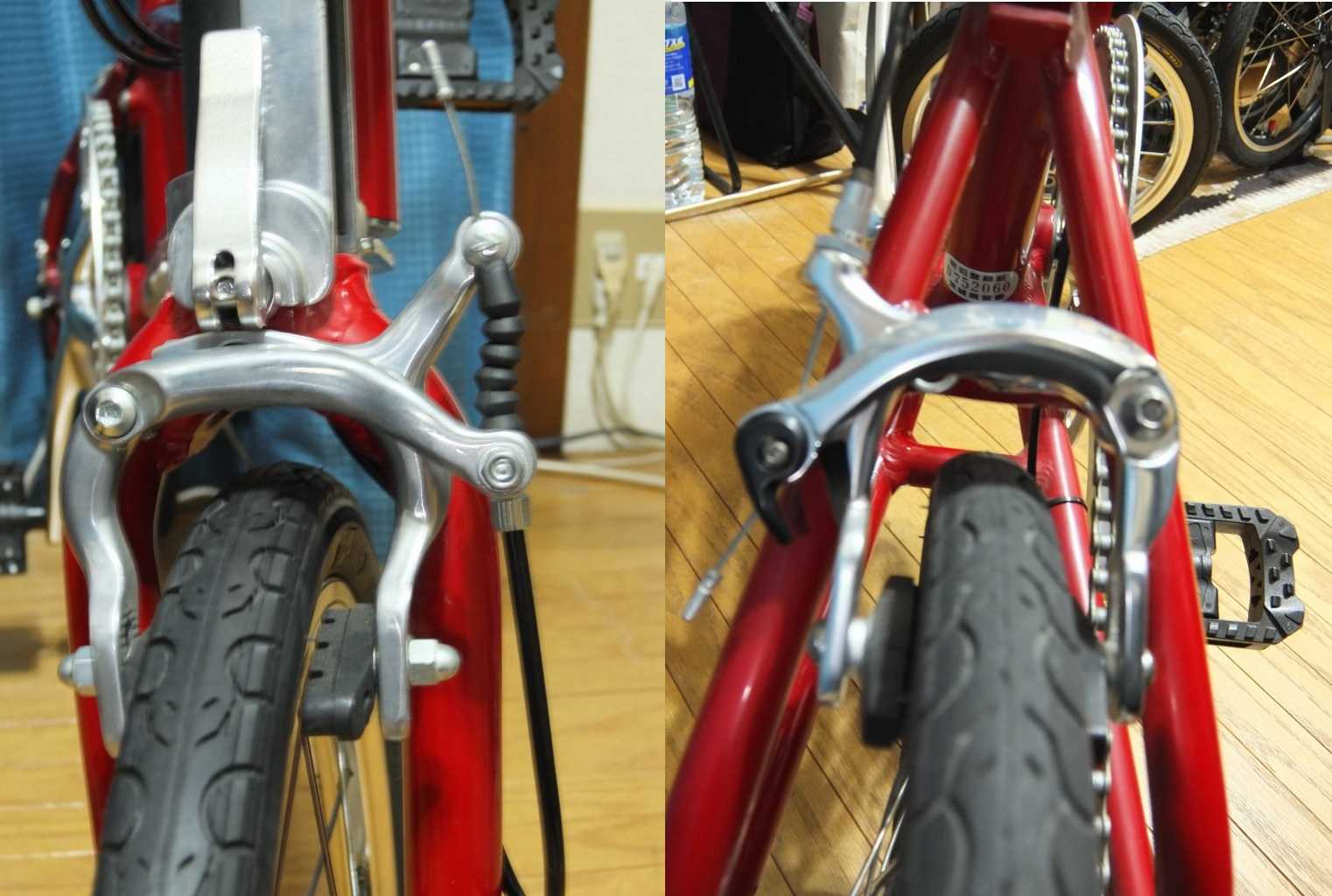 とりあえず 5Links2 165 はこんなフォールディングバイクですって事で画像をアップしました。この 5Links2 165 に限らず、20インチ未満の小径車は特殊なブレーキが多いです。フロントブレーキがブロンプロンと同じ逆引き型のロングアーチで、リアブレーキは一般的な形状ですがママチャリ並のロングアーチです。タイプとしてはサイドプルキャリパーのデュアルピポット型で ORiBike 標準のブレーキより効くし、今回は変更しません。安価なロード完成車もブレーキはグレード低いですし、そう考えると 5Links2 のブレーキは適正な効きで良心的だと思います。もし、このブレーキで不足だと考えたとしても、ブレーキシュー(カートリッジ)の交換までで、その時点でさえブレーキング時の「前転」のリスクはとても高くなります。開発者様のブログを拝見すると、通勤時のパニックブレーキで「前転」した記事がありました。もちろん標準仕様のブレーキで、です。それでもストッピングパワーが足りないと感じるなら、それは速度の出し過ぎです。潔く「スポーツ走行」可能な他のフォールディングバイクを選択しましょう。仮にこの車両でストッピングパワーを強化しすぎると、簡単に前転する事となり、かえって危険です。このブレーキで問題無い速度域が 5Links2 の常用速度域で、ようするに「速く走る自転車」ではありません。フロント逆引きワイヤーはフォークコラムの中を通って、、、ステムの頭から出てきます。この 5Links2 はワイヤーの取り回しも「デザイン」されていて、リアのワイヤー類もトップチューブに内蔵されています。でもフロントブレーキが重いので、改善の為「ニッセン」のアルミアウターに交換するかもしれません。とりあえず、ライトは手持ちの VOLT400 をセットしました。この VOLT400 は、そのまま街中で使うと眩しくて具合が悪いので、光束の制限をして「街中仕様」としています。内装5速のシマノ ネクサス インターリンク を採用しています。内装変速ハブなので、ブロンプトン等と同じくホイールはナット止めです。グリップシフトに対して標準グリップが細くて違和感を覚えました。グリップは交換したいです。チェーン引きはストッパーが欲しいです。リアエンドはチェーンテンションを維持する為に横方向に余裕があります。昔のロードエンドに似ていますが、ストッパーかチェーン引きが欲しいです。ディレラーハンガーは一体型で、シングルの 161 も、内装5速の 165 も、こんな感じの見た目となります。また、キックスタンドが縦位置でも有効な作りになので、取付部が独特な形状です。縦位置での固定用カプラーが付いています。ホイールは、転がして歩く時の安定性を考慮して、あえて「ハの字」に固定されます。後輪と同じくナット止めのフロントハブは、小径車では「お約束」の74mmで 20H ですがラジアル組みにはなっていません。16インチでも 349 より小さい 305 だとラジアル組みで強度を出すのが難しいのでしょうか。このタイヤはわりと高額で入手が難しいのが難点です。サイズは 16x1.25(32-305)で、この銘柄はハイプレッシャー対応がセールスポイントです。少し太くて安価なタイヤに交換すると、重い乗車感覚になるので純正タイヤがベストというか、選択肢がありません。購入したショップさんで予備チューブを1本下さいましたが、入手が難しいのは、小径車特有のデメリットです。ですが、米式バルブは自動車に採用されるほどエア漏れの少ない方式なので「縦型フォールディング」のメリットを活用して室内保管していれば、ほぼ「メンテナンスフリー」で運用可能になるかも。ブロンプトンやオリバイクもそうですが、米式バルブから仏式バルブに変更する場合、乗車前に必ず空気圧の点検が必要になりますし、予備チューブの携行も必要になります。そう考えれば米式のメリットが理解していただけるでしょうか。もちろん英式は論外です。軽量化のお約束としてクランク交換したいです。フレームのシートチューブ前にあるパイプは縦位置フォールディング時のハンドル(持ち手)になります。チェーンリングは PCD130 の 53T で、個人的には、もう少し軽くても良いかな。標準クランクは可も無く不可も無くって感じです。サイズ合わせと低ケイデンス走行の為にも 175mm のクランクの交換したいですが、チェーンが延びるまでそのままでも良いかな。この塗装パターンや各部ロゴは、今や 165 だけになりました。本来なら「色々と楽しめそうな」外装変速の 169 や 167 を選んでも良かったのですが、この塗装パターンは 165 の「赤/白」と「黒/金」だけとなってしまいました。現行の「アイボリー単色」で、ロゴステッカー付属というのは味気なくて好きでは有りません。という事で、だいたい 5Links2 165 はこんな感じのフォールディングバイクです。ハンドリングについては、直進安定性には優れていますし、加重移動でスムーズに曲がれますが、過度の加重移動ではオーバー