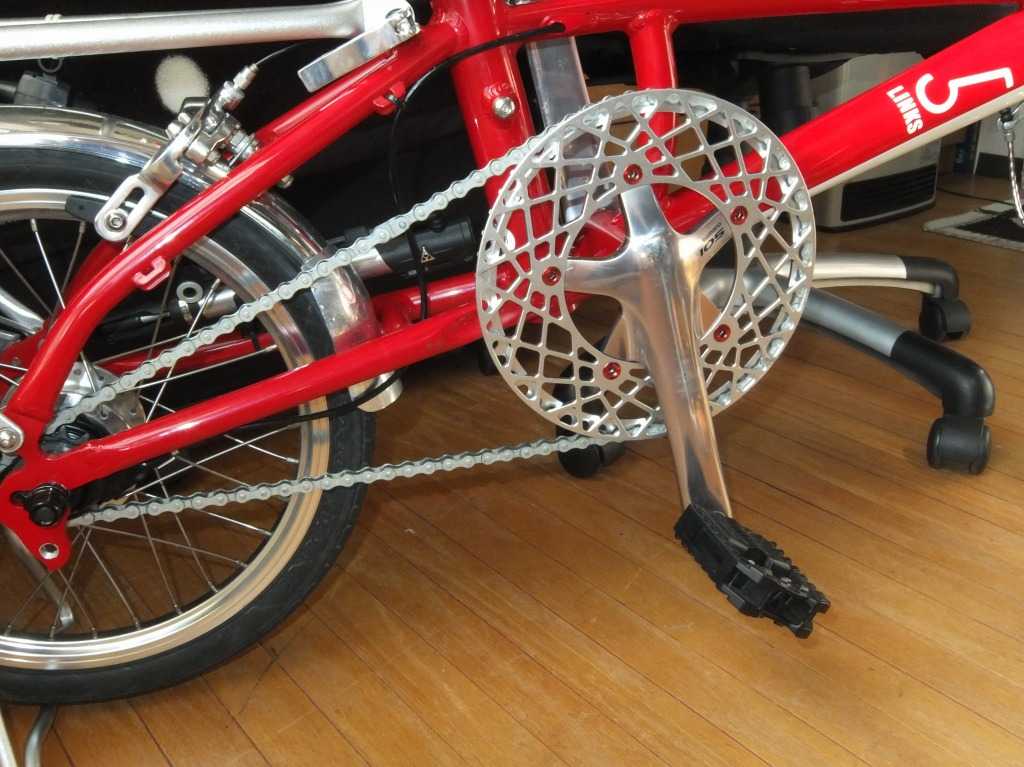 もう秋も終わりで冬が近づいて来た感じですが 5Links2 165 のお色直しで今回はチェーンリングを交換してみました。ガード一体型なので少しは軽量化したかな。フレームに合わせてチェーンピンも赤にしてみました。変わったデザインのこのチェーンリングはヤフオクで見つけました。本当は Tartaruga Type Sport に使うつもりだったのですが残念ながらチェーンラインが出ませんでした。まぁ 5Links2 に合わせてもシートチューブ周りの構成が際立って良いかなと思ってます。これで一応は 5Links2 165 も完成形でしょうか。来年はもっと自転車に乗りたいなと思います。
