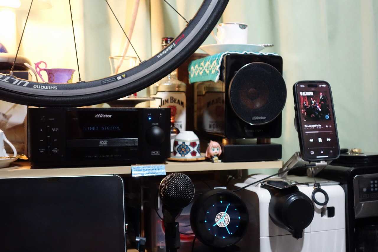 今回は Victor EX-BR3 のヘッドユニットについてです。以前使っていた EX-S1 もしっかりとセットアップしてやれば中々に良い音を聴かせてくれましたが、それも「このクラスとしては」という前提ありきでした。また iPod ドックこそ搭載されていましたが入力が足りないと言う問題もありました。対して EX-BR3 はミドルクラスで、上位モデルとの相違は音質対策に限定されており、基本性能に差異は有りません。フロントには USB-A. LINE1 IN/OUT Φ3.5st. PHONES Φ3.5st がカバーの中にあり、リアには LINE2 IN/OUT RCA. LINE3 IN/OUT OPT. があり、メインアンプとして必要にして十分です。少し残念なのは DVD ドライブ搭載ながら HDMI を持たない事ですかね。ウチでは音楽専用として使用するので関係ないですけどね。私が EX-BR3 で気になっているのは DAC の「K2」です。USB 入力では iPhone の Apple Music を聴く事は出来ませんでしたけど「USB-C⇒光」の変換アダプタを使って LUNE3 OPT に繋ぐ事で「ロスレス」も「ハイレゾ ロスレス」も無事に聴く事が出来ました。Apple Music の「ハイレゾ ロスレス」も「K2」を通して聴く事が出来ました。以前「買う気」で視聴したポタアンの JVC SU-AX7 でも感じた事ですが「K2」を ON にすると少なからず「ドンシャリ」になると言うか「華やか」になります。昔のアンプに搭載されていたラウドネスにも近いかな。BGM用システムですが「K2 Mode 2」では「やりすぎ感」が有るので「K2 Mode 1」をデフォルトにしたいと思います。EX-S1 の時は安価な USB-C⇒Φ3.5 変換アダプタを使用していたので比較するまでも無くBGMシステムのクオリティが向上しました。と言うか EX-BR3 のヘッドユニットは、かなりクオリティが高いです。小型2WaySPを鳴らすには良いアンプではないかと思いました。何と言うかデジタルアンプですけど昔のA級っぽいと言うか「ウッドコーンSP」を生かす「音作り」が「音楽を鳴らす」のに適しているのかな。出力は 40Wx2 4Ω ですが、オーディオルーム等の本格的な部屋で大音量で聴くのなら別ですが一般的な環境でなら特に問題はないでしょう。Victor の「DEUD&K2」は、現在でも問題の無いクオリティを持っていると感じました。うちでも AIYIMA の真空管プリAMP導入前なら EX-BR3 のヘッドユニットがメインシステムになっていたかもしれません。因みに余剰戦力となった EX-S1 は古い友人が大喜びで引き取って行きました。と言う事で Victor EX-BR3 はヘッドユニットもなかなかの優れモノだったというお話でした。