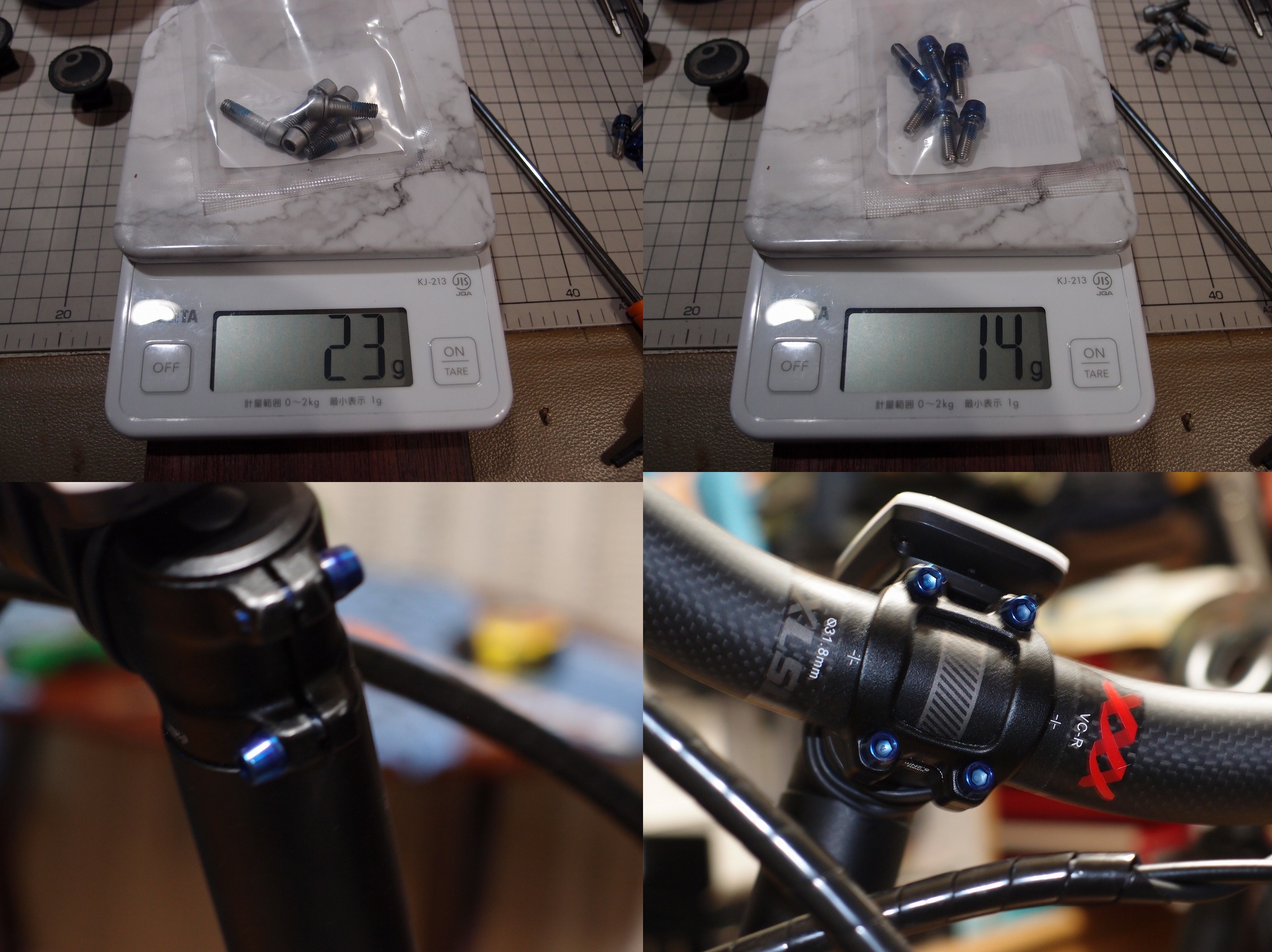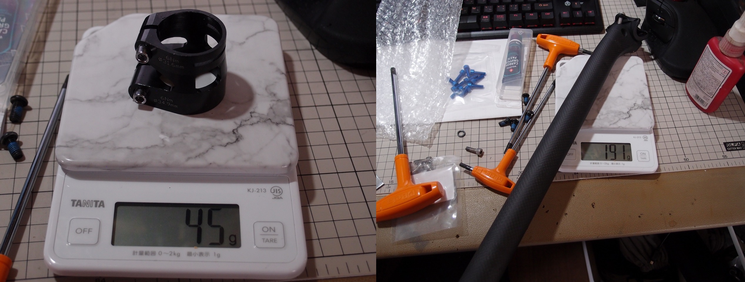 でも 322g の軽量化が出来ました。シートポストの交換はトータル 221g と、効果絶大でしたけど