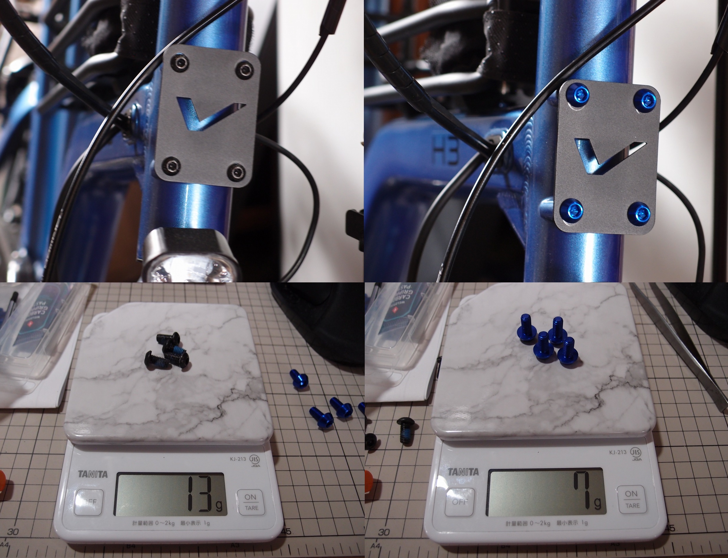 と言う事で Votani H3 をオプション等の装備部品を外さずに軽量化したお話でした。