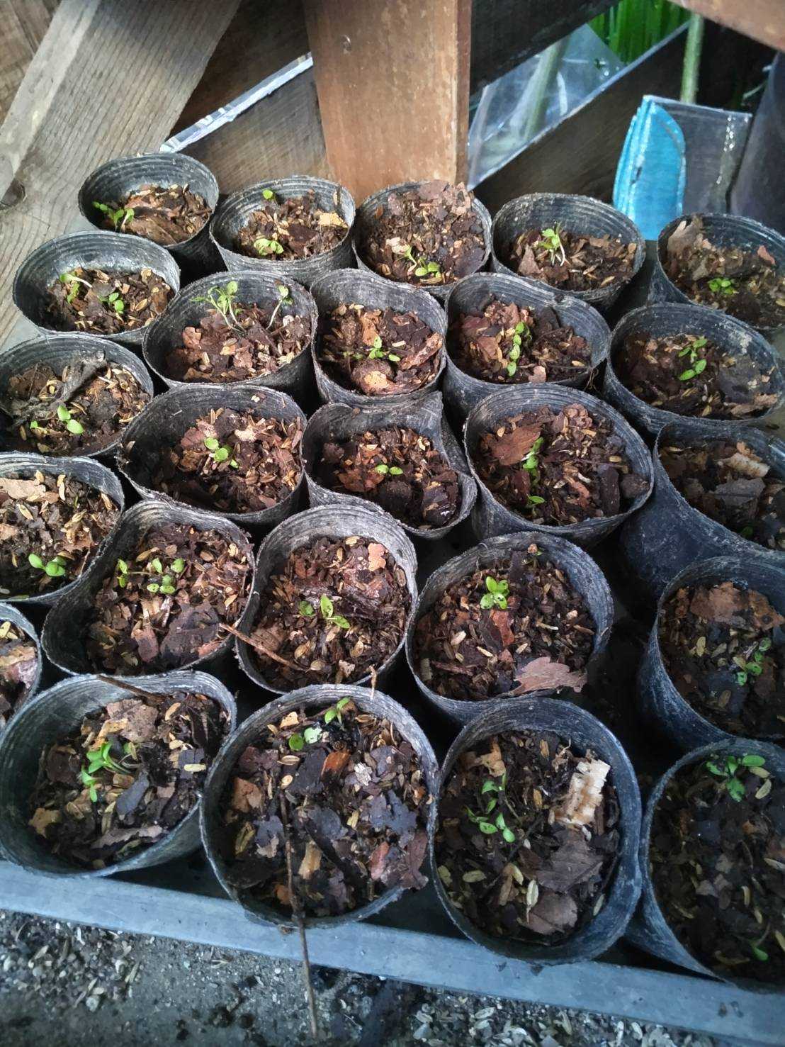 美女撫子をポットへ移す。 小さい苗だが育って欲しい。 びっしり芽が出…