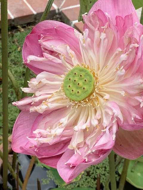 2025/08/14/木曜日/スコータイは強い日差し今朝のホテル中庭で、夕方には散りそうな蓮7月7日 行田市の古代蓮を見に知人と蓮は午前だけ花開くとか。始発の電車で待合せ駅まで2時間ほどで到着↓右下のトンボの青紫の羽の不思議な造形。丁度昨日、カンペンペットの遺跡で同型の黄色のトンボを見た。何万本の世界の蓮と古代蓮に迎えられる。蓮の豊穣な香りがカタチを持ち圧力を感じるほど小さなせせらぎの緑陰の元、知人の奏でるライアーの楽曲に合わせ鳥たちも歌いだす。アオサギが悠々と蓮池を散歩する。地上に晴れやかに明かりを灯す蓮の花は4度開いて花びらを散らしていくという。4のリズム。↑中、ハートの形で蜂たちを迎えいれる、メシベ。乾燥させればお茶の香り付けになる。明日朝に花開きそうな今朝の蓮、ホテル中庭サワディカー♬