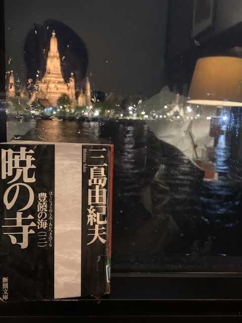 2025/09/25/木曜日/30度以下なら過ごしやすい5日ばかり留守にしていた自宅玄関前におびただしい羽毛の中にこんもりと横たわる鳩の遺骸ドアの真ん前、ど真ん中その位置があまりに出来過ぎ猛禽類が家前の林に棲んでるとはツユにも知らぬ。見上げれば2階の玄関真上ガラス面に鳩横向きシルエットがくっきりと転写されている。これは何事ぞ。何かに追われたか。援けを求めて戸口を叩いたか。翌朝出かけた先の神田川の橋の欄干に、1羽の鳩が止まっていた。近づいても逃げない。心の中で、お前さんのお仲間が昨日酷い死に方をしていた。あんたはよく気をつけて長生きしなさいね。と語りかける。鳩は豆鉄砲を喰らったように、まん丸く見開いた目のフチを赤くして、白目の中にグレーな点を灯し耳を傾けている風情何となしほろりとする。ででっぽでっぽ。〈DATA〉出版社 新調社著者 三島由紀夫新調文庫昭和五十二年十月三十日 発行平成十四年十一月十五日 四十二刷改版平成十七年十月十五日 四十九刷〈私的読書メーター〉〈穏当に読むなら『春の雪』からなのだろうけれど「豊饒の海」全体が輪廻転生のテーマを持つのであれば、自由なアクセスが許されるはず。文頭から引き込まれた。何といっても文の巧みさが読み手を離さない。中年クライシスの手前辺りか、語り手の本多は、小乗仏教タイに身を開いて大乗仏教の哲学を苦悶していた。自分は日本人の生まれ変わりと泣き叫ぶ月光姫と敗戦後の日本で再会する後半部。老醜を晒す本多の、谷崎潤一郎ばりの展開と見事に成長した月光姫の生命の横溢。奈落の底には水か炎か。投じられたエメラルドの指輪は本多にとり秘仏に等しい。〉読み終えてひと月ばかり過ぎた。三島の事件後、読んだと思われる豊饒の海について、或いは輪廻転生について或いは阿頼耶識、末那識について亡父が話してくれたことを時々、夢の形見のように思い出す。人が死ぬとはどういうことだろうか。冗談を言う前の、鼻の周囲に浮かぶ密やかな笑い、そんな父の表情が鮮やかに蘇るとき、父は当にここにいる、のだ。ところが現実世界ではその姿は求められない。意識の世界ではありありと像を結ぶのだが。月光姫の脇腹の3つ並んだ黒子も意識と現実の行き来をするかのようだ。この黒子はオリオンの三つ星の隠喩なのだろうか。