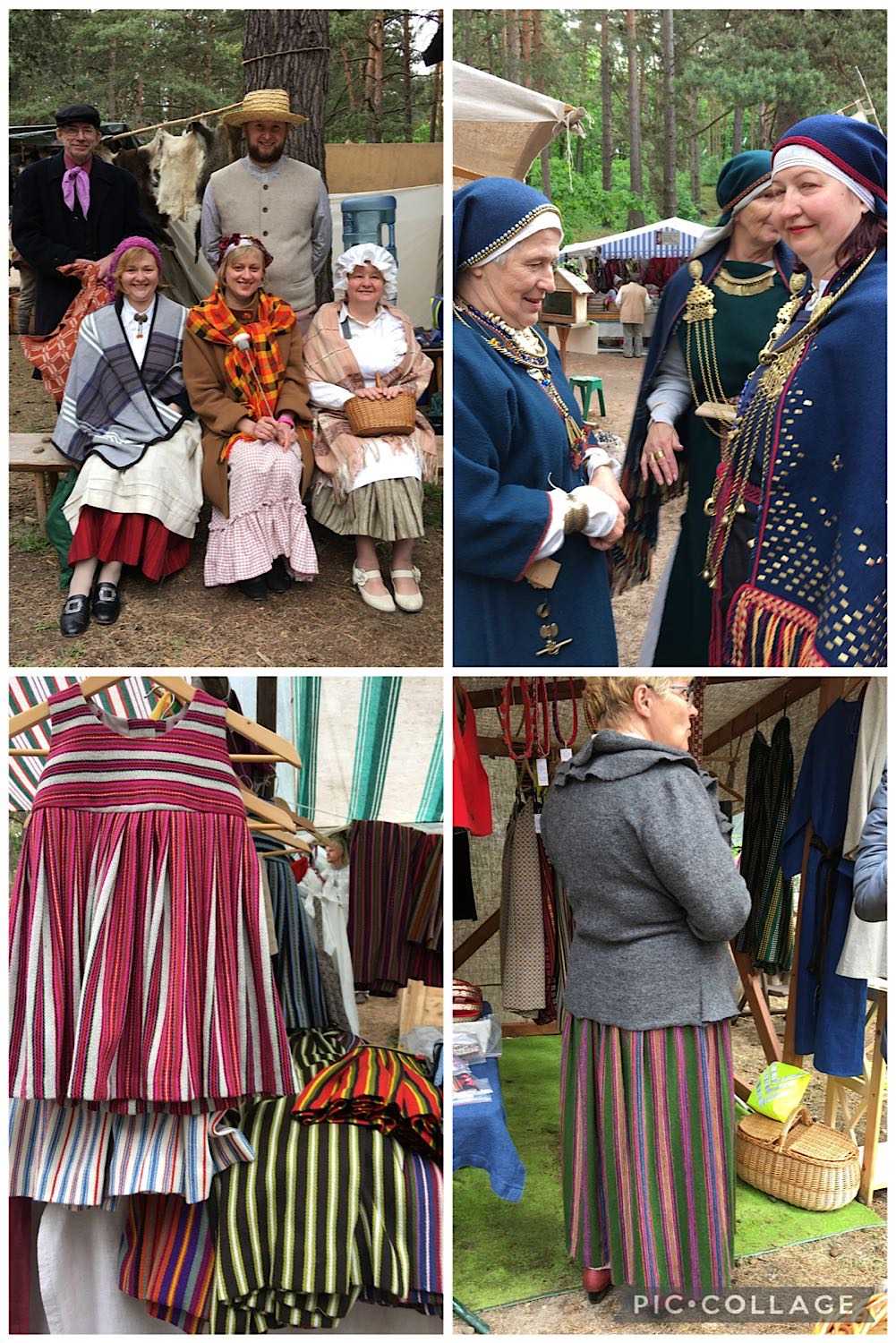↓ラトビアの森の手仕事マーケットとラトビアのミトンを地域ごとにまとめたコレクション本を出した女性が持っている手仕事のお店に併設された民族衣装コレクションの画像