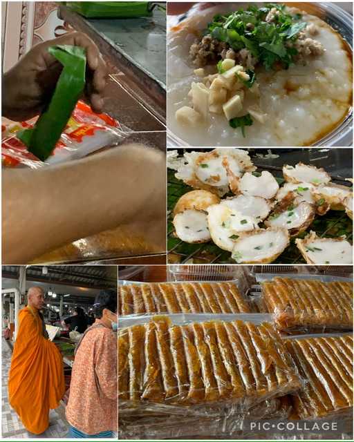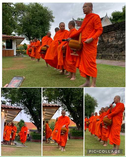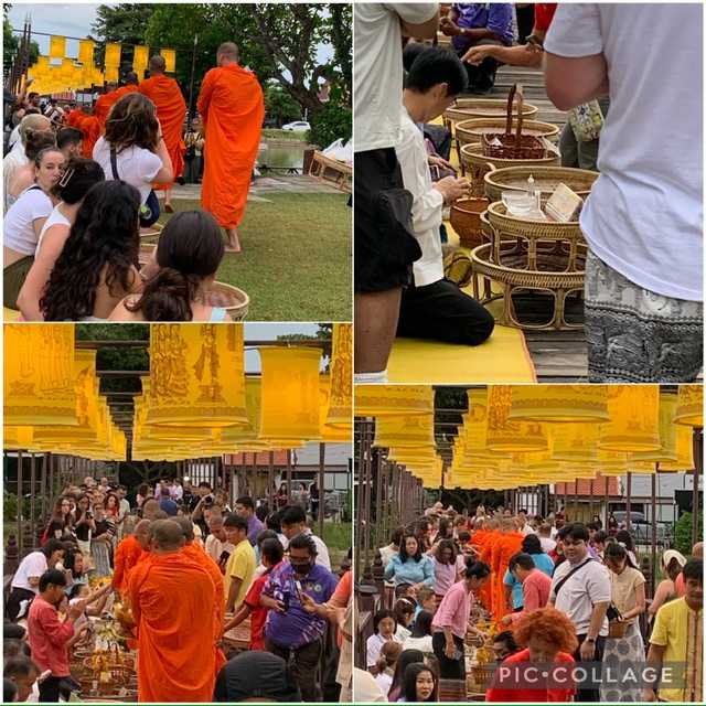 朝6時、お坊さんへの喜捨体験をしようと、お寺に出かけた。地元の人や観光客が既に沢山並んでいる。