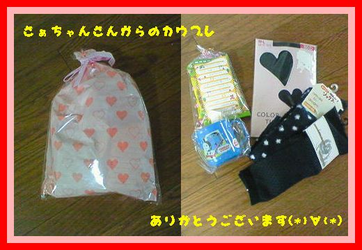 本日1回目の日記です さぁちゃんさんからカウプレ当選品が届きました~(*>∀<*)ママ用あったかセットに当選弟君ありがとう~オマケにトーマスのコップとお菓子も靴下本当にあったかそうです(*>艸<*)さっそく履かせていただきますね~~~ さぁちゃんさんありがとうございましたこれからもなかよくしてくださいね~~m(*- -*)m