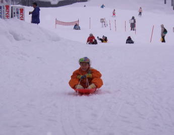 ユウは、去年は恐がってほとんどしなかったソリ遊びにハマってしまい、ずっとやってました。コブで飛んでも横倒しになってもヘッチャラで大笑い。1年の成長を実感したね~。