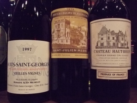 BarWヴィンテージ ワインフェアも、本日が最終日。今日のラインナップは、写真左から1997 ニュイ・サン・ジョルジュ・ヴィェーユ・ヴィーニュ(ブルゴーニュ村名)(アラン・ミシェロ)1975 シャトー・デュクリュ・ボーカイユ(ボルドー、サンジュリアン村2級)1970 シャトー・オー・ブリオン(ボルドー、グラーブ地区一級)いよいよボルドーの5大シャトーのひとつ、オー・ブリオンが登場します。しかもボルドーの当たり年の1970年。果たして、どんなお味でしょうか…?[1998]シャトー オーブリオン楽天最安値に挑戦中![2002] シャトー・デュクリュ・ボーカイユ サン・ジュリアンBarW Live Information12/13(日)出演Yumiko(ボーカル)田中晃二(ピアノ)aquie(ボーカル)ケンタカハシ(ギター)オープン 18:00スタート 19:00チャージ ¥200012/27(日)出演藤谷典史(ギター)佐々木信幸(ピアノ)オープン 19:00スタート 19:30チャージ \1500ご予約はBarW03 3375 6061までぐるなび mixi