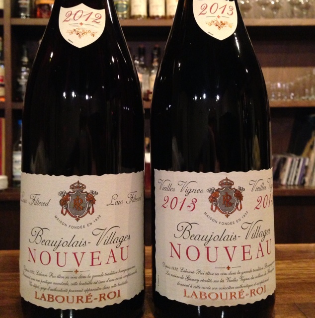 今年のボジョレー・ヌーヴォーも昨夜の0時に解禁しました。1年間、ワイン生産者の方が手塩にかけて育てた、最初のワインが頂ける嬉しい日ですね。ボジョレー・ヌーヴォーなんて大して美味しいワインじゃないでしょ、なんて興醒めな発言をする方も結構多いですが、フランスの太陽と大地に育まれて、わずか3ヶ月前まで木になっていたブドウから作られるワインだと思うとロマンがあると思いませんか?さて、今年もWineBar Wでは例年とおりラブレ・ロワ社のボジョレー・ヴィラージュ・ヌーヴォーを仕入れました。昨年の同じワインもセラーに保存してあったので比較して飲んでみました。昨年のヌーヴォーは、1年たった今でも実にフレッシュでした。色調は明るめのルビー色で透明感があります。赤い小さな果実を思わせる香りがあり、爽やかな酸があります。対して今年のヌーヴォーは気候が厳しく難しい年と言われていたにもかかわらず、色は濃く、味わいもしっかりしています。後味にはややタンニンの渋みも残ります。こうして比べてみると、毎年、ワインの味わいはかなり違っていることがわかりますね。この辺りが、ほかのお酒に比べて生産工程で人の手が入る割合の少ないワインの面白いところであり、難しいところでもあります。まさに「ワインは畑で作られる。」ということですね。ヌーヴォーよりどり6本で送料無料 (沖縄のみ820円)ラブレ・ロワ ボージョレ・ヴィラージュ・ヌーボー赤 2013 750mlブシャール・エイネ・ボージョレ・ヌーヴォ ロゼ スクリューキャップ2012 750ml / 送料240円、3900円以上で送料無料 /ブシャール・エイネ・ボージョレ・ヌーヴォ ロゼ スクリューキャップ2012 750ml【販売:便利マート】【税込3900円以上で送料無料】【楽天24】【10P13oct13_a】【RCP】2013 ボジョレー・ヴィラージュ・ヌーヴォー【予約商品】【新酒特典対象】ボジョレー・ヴィラージュ・ヌーヴォー・C.C.D.(セセデ)“キュヴェ・トロワ・メートル”[2013]年・航空便・最高金賞の匠ヌーヴォー・パルドン・エ・フィスBeuajolois Villages Nouveau C.C.D. Cuvee des Trois Maitres [2013]【Wine Bar W今後のライブスケジュール】◆11月24日(日)出演山口友也 トランペット藤谷典史 ギター吉木稔 ベースオープン 19:00スタート 19:30(2ステージ)※ストレートなジャズというより、ややファンキーな選曲中心のトリオです。チャージ ¥2000(ドリンク別)◆12月11日(水)出演八木映美 ボーカル藤谷典史 ギター田中晃二 ピアノオープン 19:00スタート 20:00 (~22:00頃まで。)※ミュージックチャージ無料※水曜ライブではおなじみの藤谷&田中コンビに若手女性ボーカル八木映美が加わってお送りするスペシャル・ライブ。◆12月15日(日)出演Yumiko ボーカル桜井俊也 ギターRIMESTONE POOLMARIX ボーカル桜井俊也 ギターオープン 17:00スタート 17:30チャージ ¥1500(ドリンク別)◆12月22日(日)出演FizPICO ボーカル桜井俊也 ギター斎藤夢 ボーカル&ギターオープン 17:30スタート 18:00チャージ ¥1500(ドリンク別)【ご予約、お問い合わせはBarWまで】ぐるなびBarW【Barブログランキング参加中。ポチッとご協力よろしくお願いします。】にほんブログ村