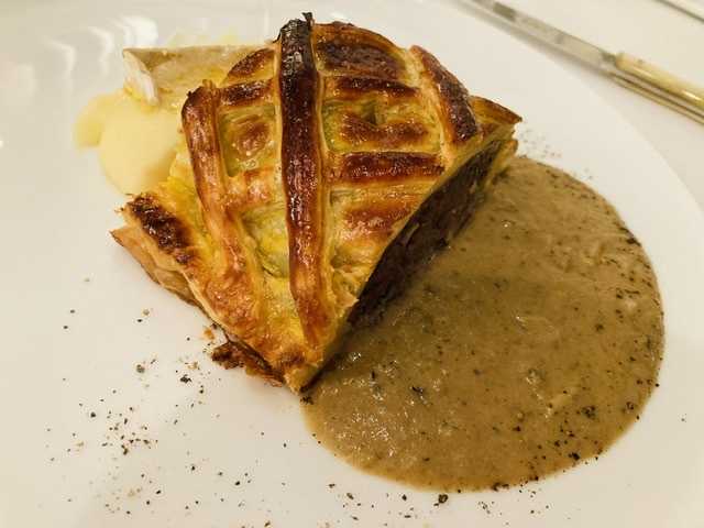 写真は鹿肉のミンチのパイ包みです。