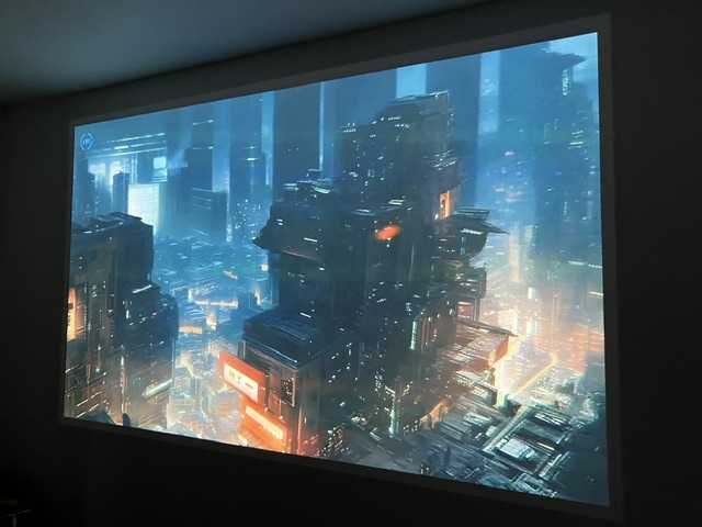 画質も音質も上々です。壁一面がスクリーンになるの良いですね。