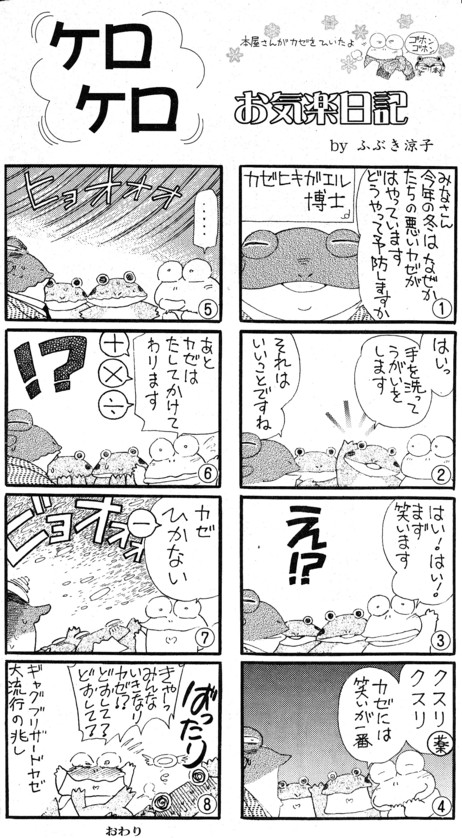 この時期に来て、嫁子供ともにノロウイルスにかかってしまい、すっかり更新が滞ってしまいました。とはいえ、いまも忙しいので、先週のケロケロお気楽日記をご紹介してお茶濁そうかな。手抜きで済みません