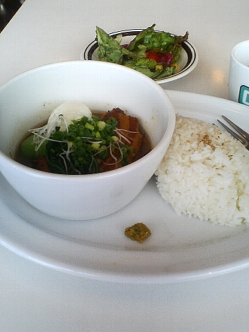 今日ご紹介するお店はDEXEE DINER (ディキシー・ダイナー)というカフェです。ここは、いつも暇があれば行っていたお店ですが最近ご無沙汰しております。すみません。近いうちにまた行きます。このランチがまた旨いので、ご紹介を。以前はハンバーグをご紹介しました。ハンバーグは一度焼いてから再度オープンで火を通すので、中まで味がしみており、煮ていないのに柔らかいハンバーグです。今回は別なメニュー二品をご紹介します。豚肉の塩煮込み豚肉の角煮の塩味版です。味はサッパリなのですが、スープが大根などと一緒に煮てあるのでいい味を出しています。もう一つは白身魚のフライ・トマトチリソースです。 こちらもトマトチリソースが濃厚な味となっており、程よく辛く白身のフライにピッタリの味になっています。ここのお店のルールは・・・・この料理に食前酒と食後酒(もちろん共にノンアルコールもあります)がついてくるところです。これで1000円。カフェとしては高いのですが、この内容を考えたら1000円は決して高くはないです。