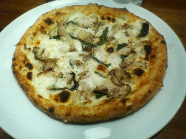 今回ご紹介するお店はピッツァ サルヴァトーレ・クオモです。ピザのお店です。ここの代官山店に行ってまいりました。代官山となのっているのですが、代官山駅からは結構距離があります。渋谷駅からの方が近い感じはするのですが・・・・かなり急坂を登る感じになりますので、散歩を兼ねて代官山から伺い、帰りは渋谷駅へというのがベストだと思います。さて、実際の料理ですが、本日オイラが選んだメニューは・・・鶏肉とキノコのピザです。 コレにサラダがついてきます。 ランチメニューは日替わりで3種類のピザからお好きなものを一つ選べるルールになっております。さらにコーヒーがついて1200円とまたもや1000円を出っ張っていますが、注文してから生地を伸ばして石釜で焼いてもらえるので、香ばしいいい匂いが漂ってきます。