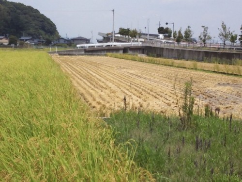 もう稲刈りも終わりますよ.新米が食べれます。田植えの終わったところもあります。土佐は年に二度米がとれますよ。二期作です。夕焼けがきれいでした。明日も暑いかな?