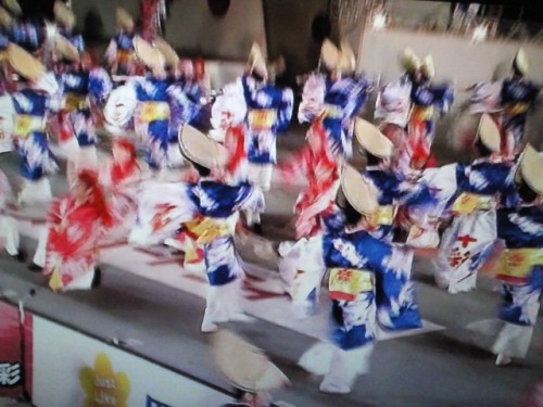 よさこいまつり前夜祭、花火大会始まったよ。きれいですね.暑いので家でみています。千葉から届いた梨食べながら・・・美味しいね。音でかく 夜空に広がる 光の輪 よさこいの夏 前夜祭祝 ゆう明日から賑やかな町になりますよ。まあ、10,11日は仕事ですので見れませんが・・最終日も会があり今年はよさこいの鳴子踊りはみれません。
